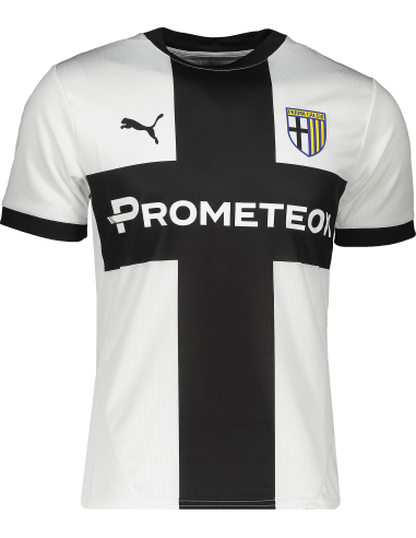 Este modelo cuenta con un diseño clásico en los colores icónicos del Parma Calcio: blanco y negro. La camiseta presenta un ajuste regular que proporciona libertad de movimiento sin comprometer el confort. El logotipo de PUMA se sitúa en el pecho, junto al escudo del club, ambos bordados con precisión para añadir un toque de calidad superior. Las mangas cortas y el cuello redondo completan un look moderno y aerodinámico, ideal tanto para el campo como para los aficionados que buscan representar a su equipo.