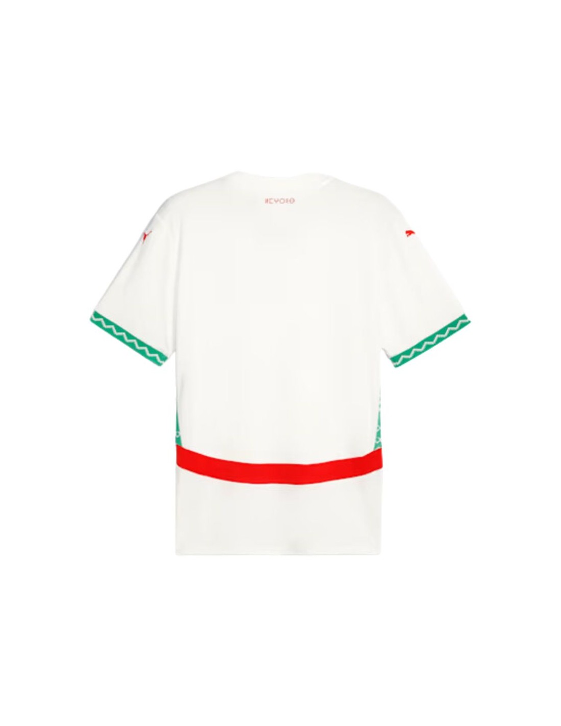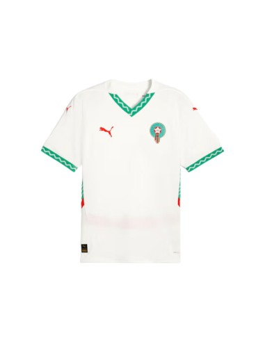 Esta camiseta presenta un diseño limpio y moderno, con un color blanco predominante que le da un toque fresco y profesional. El escote redondo y las mangas cortas le otorgan una mayor libertad de movimiento, ideal para la práctica del fútbol. En el pecho, destaca el escudo de la selección nacional de Marruecos junto con el logo de PUMA, simbolizando el orgullo nacional y la calidad de la marca.