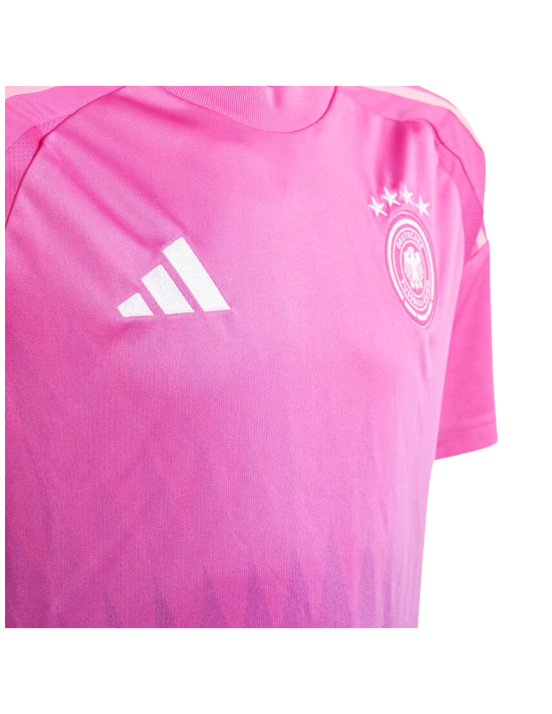 Esta camiseta presenta el diseño icónico de la selección alemana con los colores distintivos y el escudo nacional en el pecho. Su corte favorecedor y los detalles de Adidas le dan un estilo moderno y deportivo.