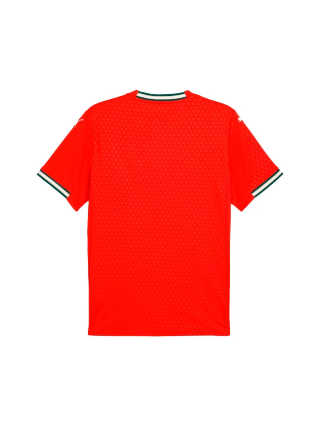 La Camiseta PUMA Portugal 1º Equipación tiene un diseño moderno que sigue la línea tradicional de la selección portuguesa, con los colores rojo y verde que representan a Portugal. El escudo oficial bordado de la selección portuguesa está ubicado en el lado izquierdo del pecho, mientras que el logo de PUMA se encuentra en el lado derecho. La camiseta presenta un corte entallado que ofrece una excelente adaptación al cuerpo sin restringir el movimiento, brindando una sensación de ligereza.