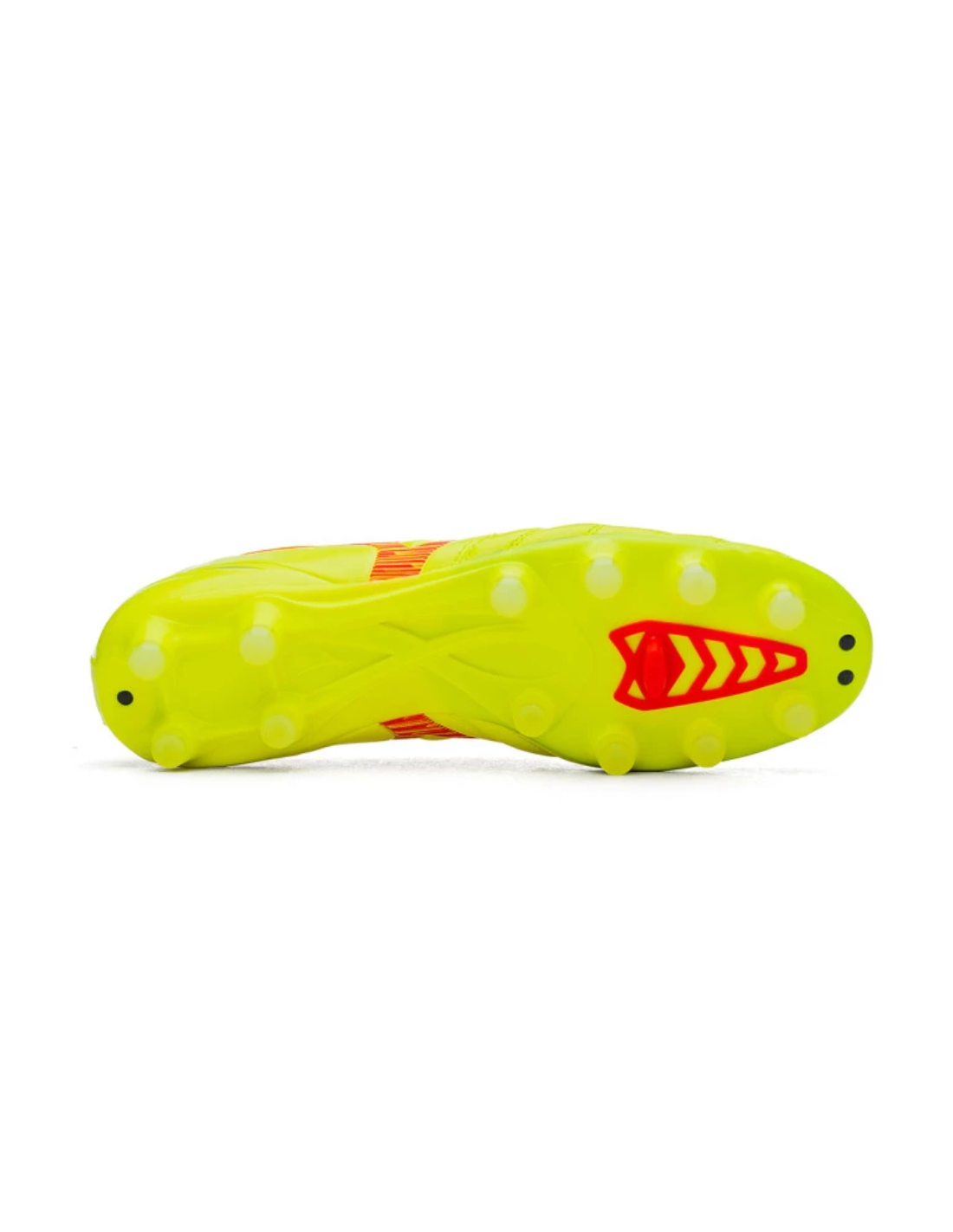 El diseño elegante y moderno de estas botas de fútbol resalta con su color amarillo vibrante. La estructura ergonómica asegura un ajuste preciso y cómodo, mientras que los detalles de Mizuno agregan un toque distintivo. Estas botas no solo son un equipo deportivo, sino también una declaración de estilo en el campo.