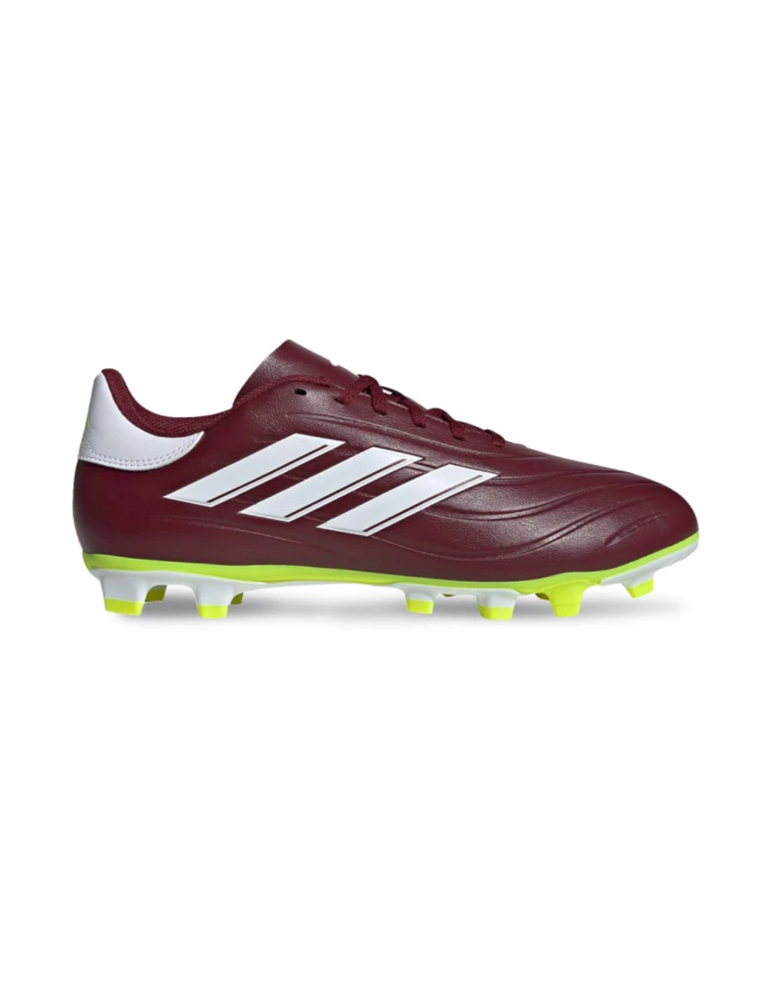 Las ADIDAS COPA PURE 2 CLUB FXG J están fabricadas con materiales de alta calidad para asegurar durabilidad y comodidad. La parte superior está confeccionada en cuero sintético suave, mientras que la suela ofrece tecnología Flexible Ground, ideal para adaptarse a terrenos firmes, césped artificial y tierra.