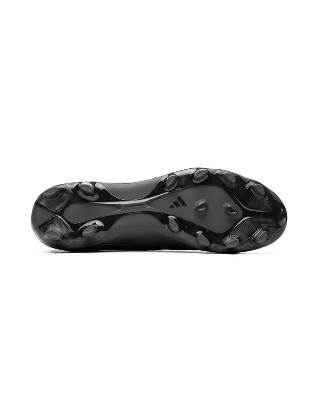 Este modelo presenta un diseño elegante y moderno en color negro con detalles que resaltan su estilo agresivo y profesional. La estructura anatómica se adapta perfectamente al pie, brindando comodidad durante todo el partido. Los tacos están distribuidos estratégicamente para maximizar la tracción y la aceleración en terrenos de césped natural y artificial.
