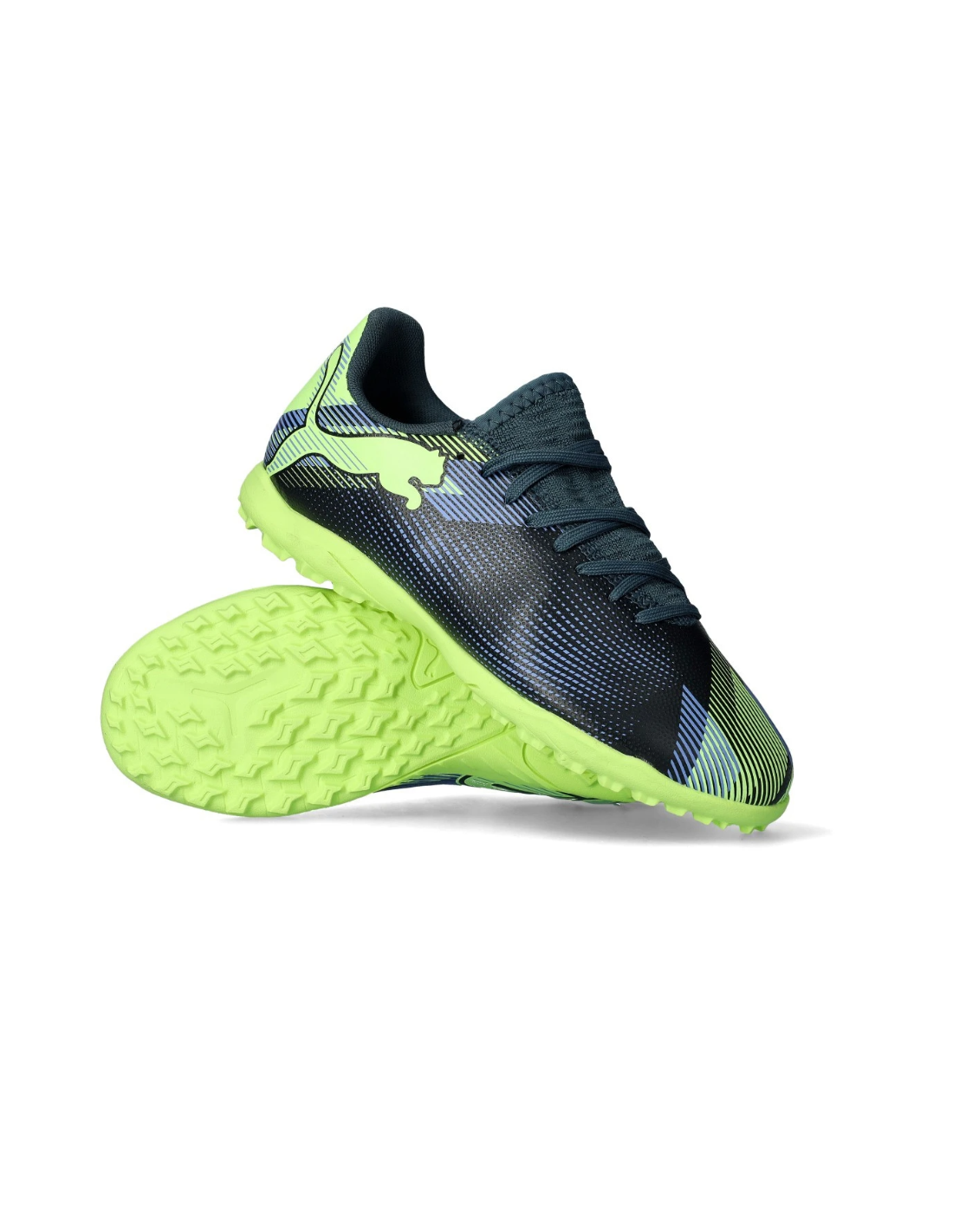 Los PUMA FUTURE 7 PLAY TT JR están fabricados con materiales de alta calidad que aseguran durabilidad y ligereza. Su parte superior combina materiales sintéticos flexibles y resistentes, lo que permite un ajuste dinámico y natural al pie. Además, la suela de goma de alta tracción está optimizada para terrenos de césped artificial, garantizando estabilidad y agilidad en cada jugada.