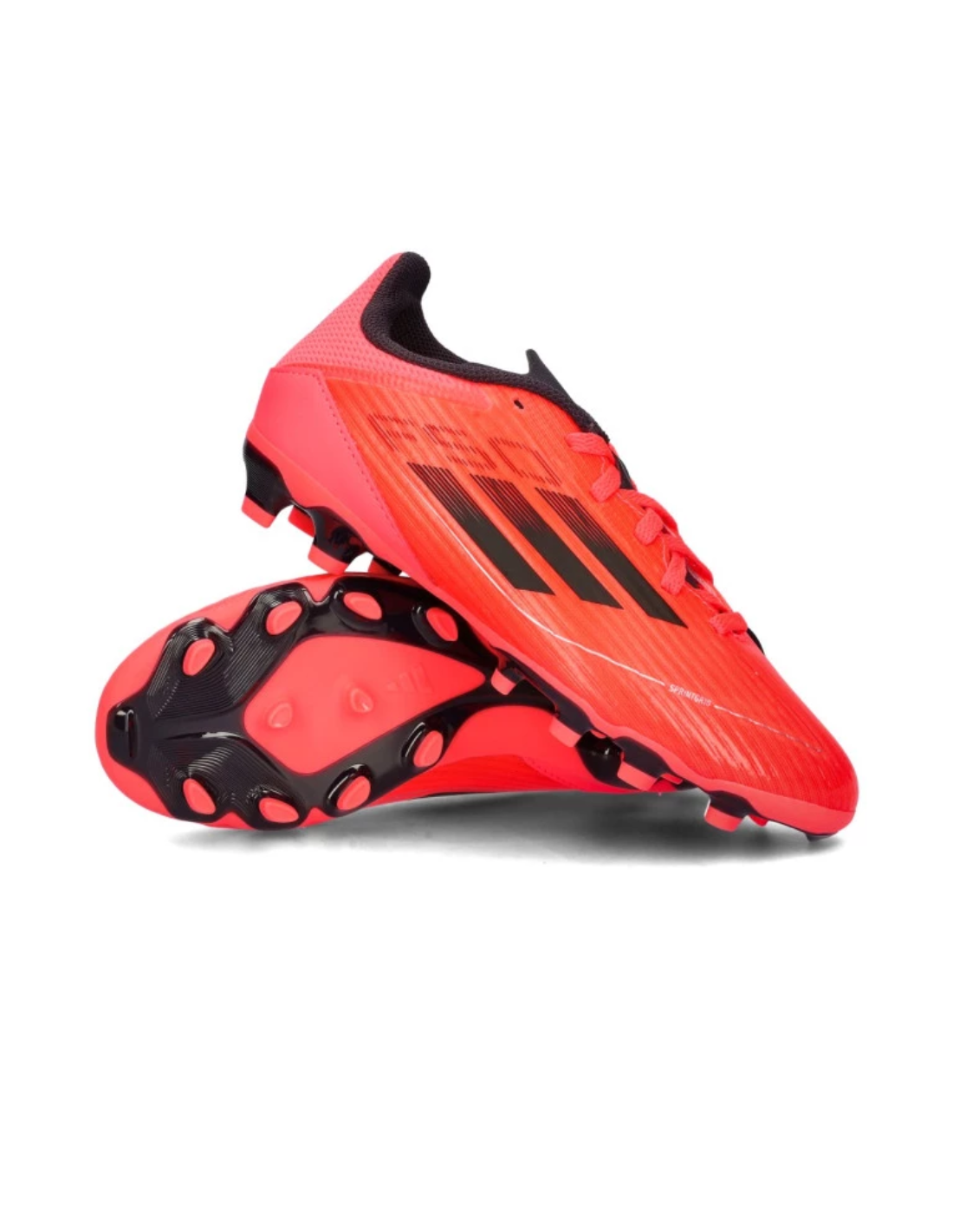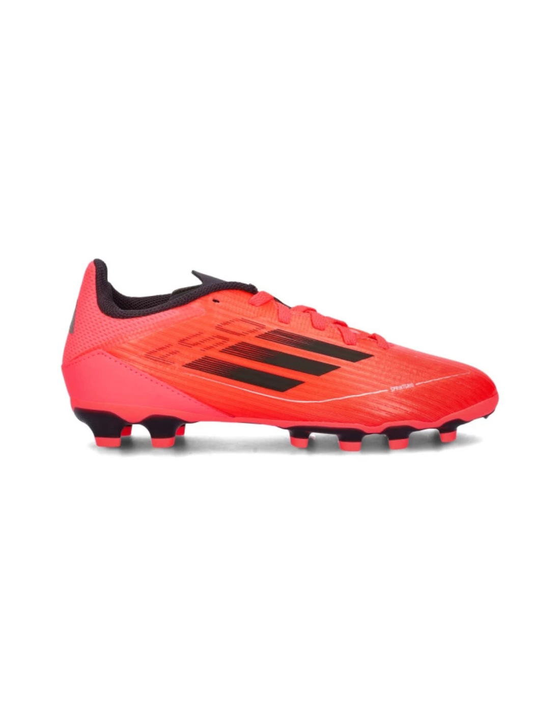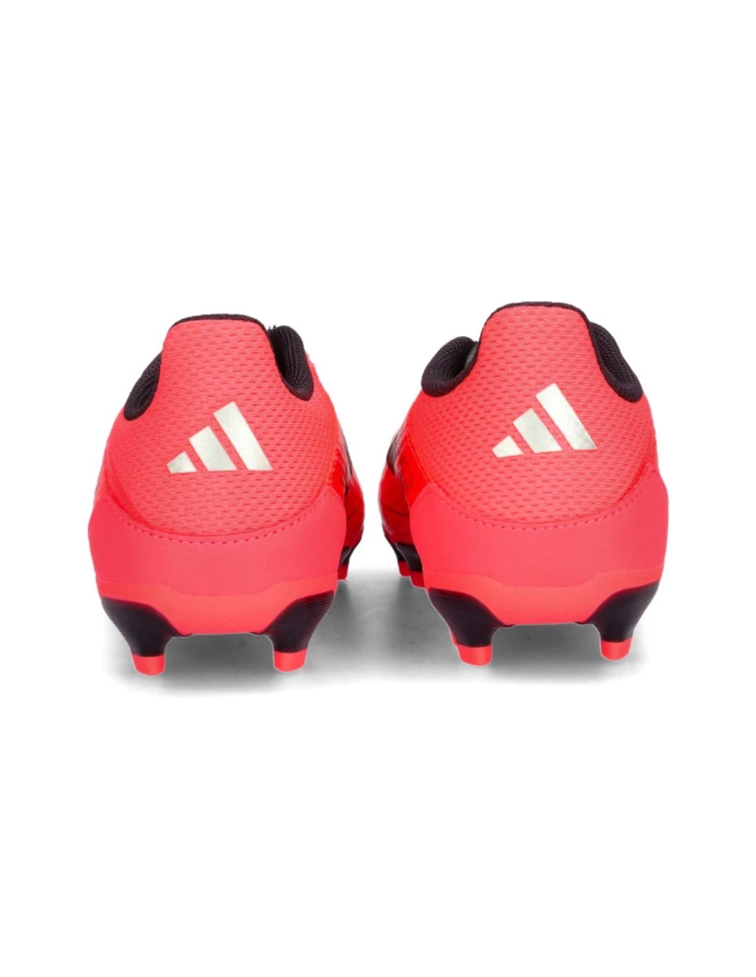 Este modelo destaca por su vibrante color coral, que no solo aporta un estilo moderno, sino que también asegura visibilidad en el campo. Las zapatillas cuentan con un diseño aerodinámico y ligero, ideal para los jóvenes jugadores que buscan velocidad y precisión. La combinación de colores y el icónico logo de ADIDAS proporcionan un look atractivo y profesional.