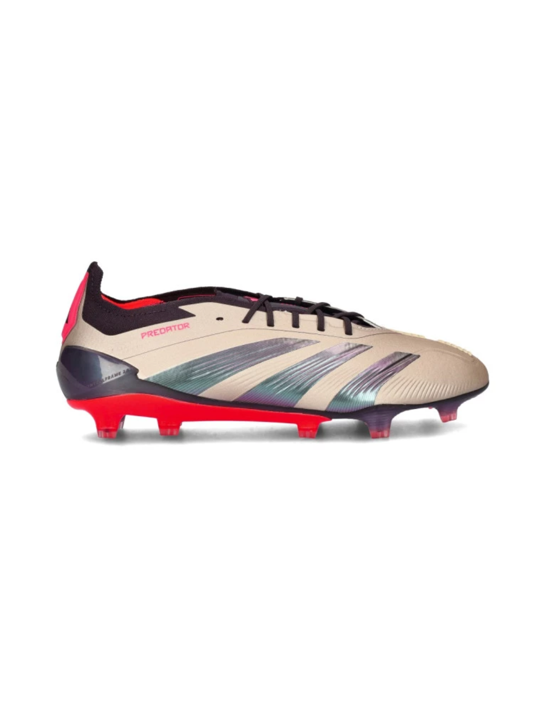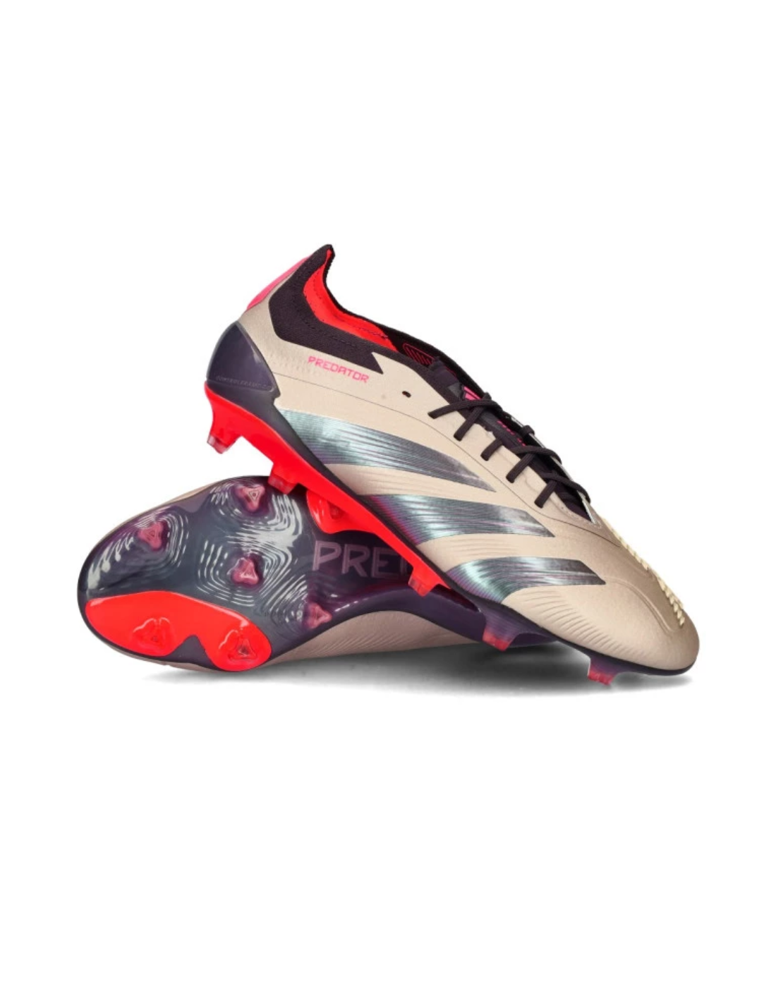 El color plateado de los ADIDAS Predator Elite FG no solo destaca en el campo, sino que también refleja la elegancia y modernidad de la marca. El diseño es aerodinámico, con una suela especial que facilita el movimiento ágil y el cambio rápido de dirección. La disposición estratégica de los tacos Firm Ground (FG) es ideal para canchas de césped natural, proporcionando una tracción excelente sin comprometer la velocidad.