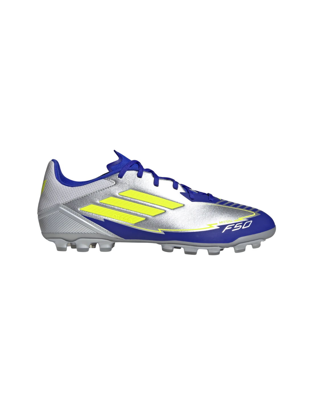 Domina el juego con los ADIDAS F50 LEAGUE 2G/3G AG MESSI PLATA (JR8057). Diseñados para césped artificial, estos botines inspirados en Lionel Messi combinan velocidad, precisión y un diseño espectacular en tonos plateados.