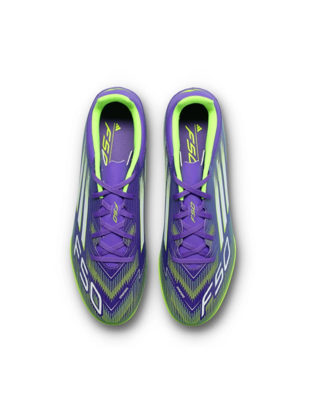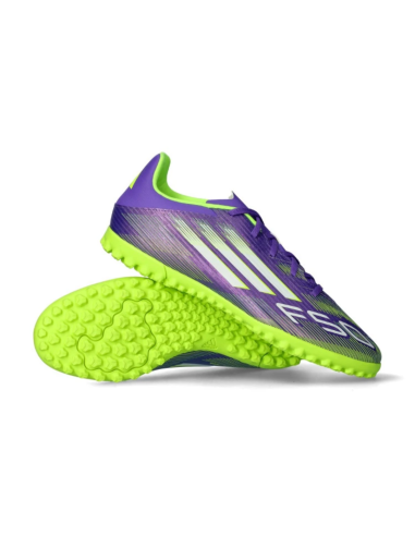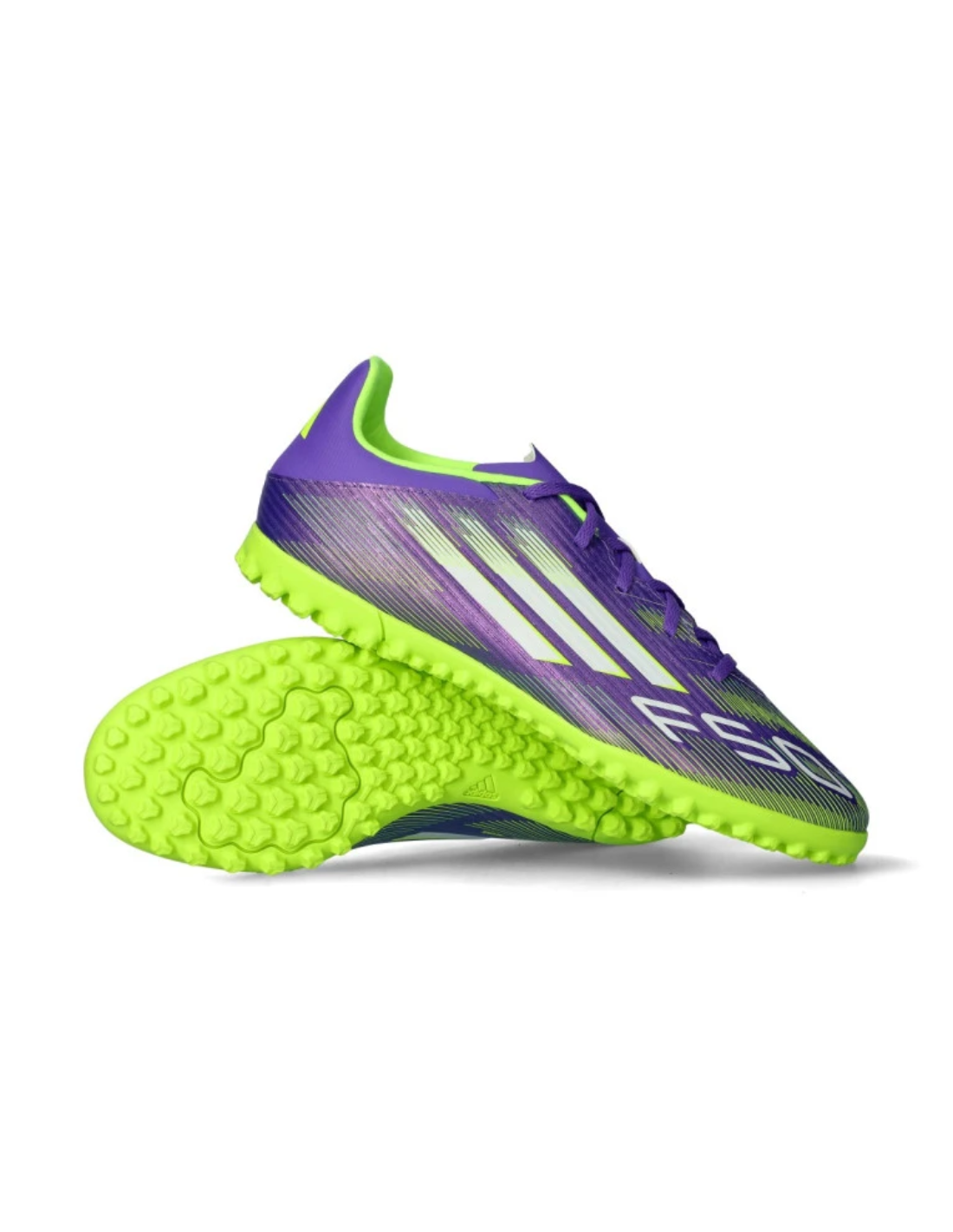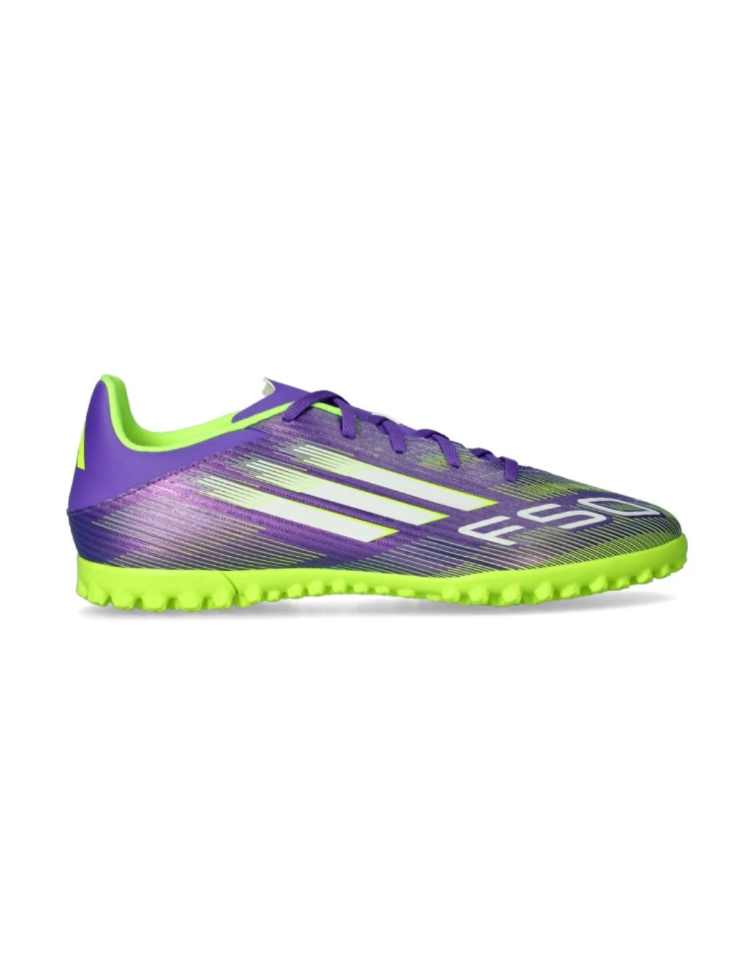 Zapatillas de fútbol turf ADIDAS F50 CLUB TF J Violeta (JI0039) para jóvenes futbolistas que buscan velocidad, tracción y control en campos de césped artificial. Diseño moderno con materiales resistentes y ligereza para el máximo rendimiento.
