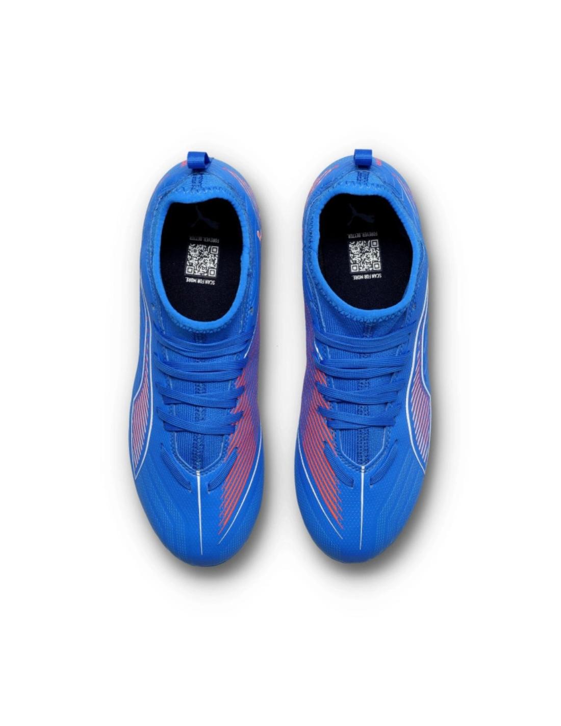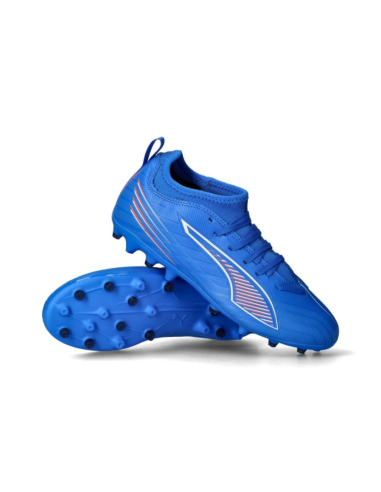 Zapatillas PUMA ULTRA 6 MATCH MG JR Azul – Bota juvenil ligera para césped natural e híbrido, suela SPEEDSYSTEM y malla técnica. Máximo control, tracción y velocidad en comando.