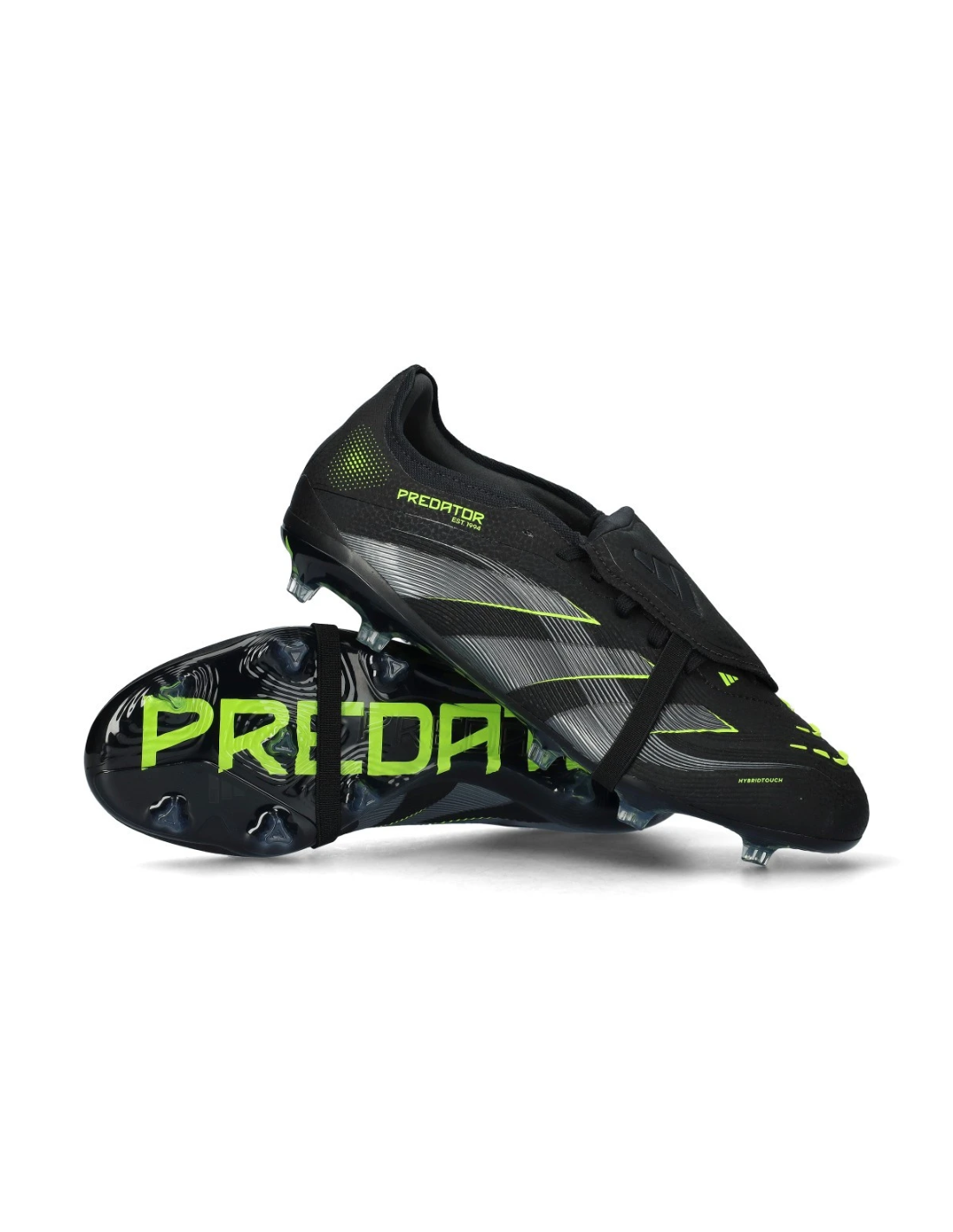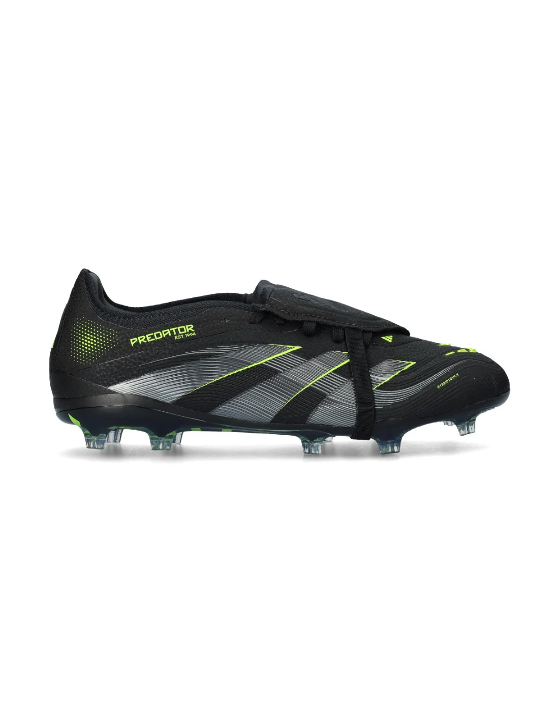 Zapatillas de fútbol Adidas Predator Pro FT FG en color negro JS4072. Suela FG para césped seco, upper sintético HybridTouch con StrikeSkin para control preciso, y lengüeta frontal clásica. Diseño profesional, ajuste regular y máxima estabilidad.