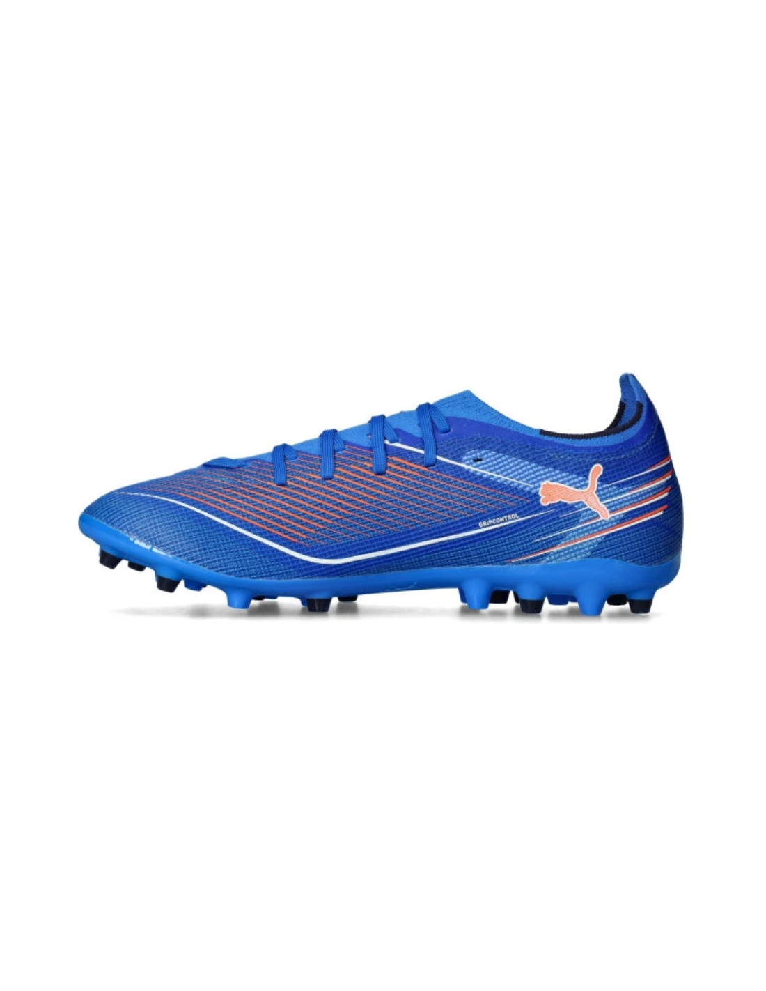 El empeine está confeccionado en malla técnica ligera con GripControl Skin, una capa texturizada que mejora significativamente el contacto con el balón y el control en cada toque. Al menos un 30 % de los materiales son reciclados, lo que refleja el compromiso sostenible de PUMA.