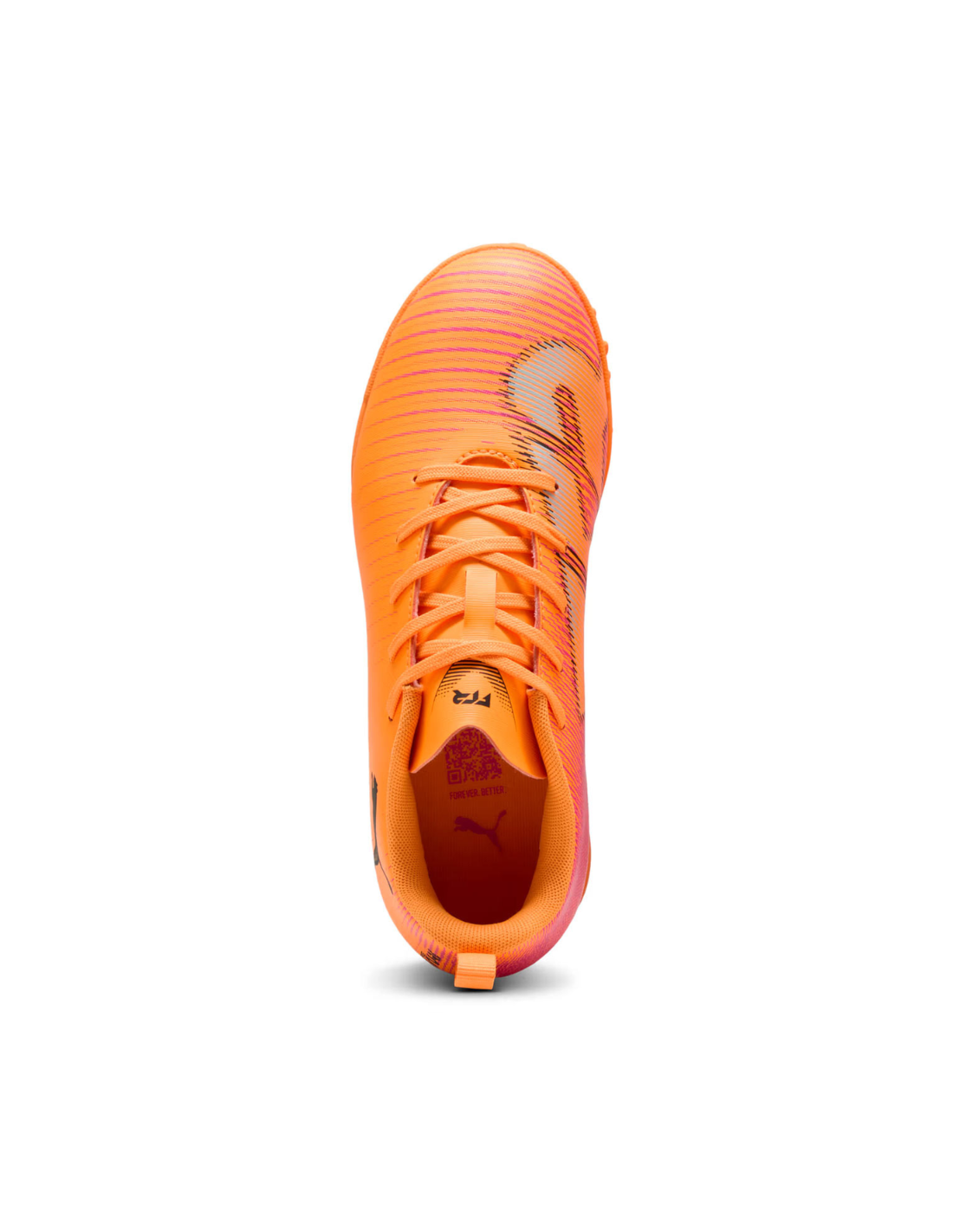 La parte superior de las Puma Future 8 Play TT Jr está fabricada con una microfibra sintética premium que proporciona un ajuste ceñido al pie. Este material es suave, resistente y facilita la limpieza, evitando la acumulación de suciedad. Además, incorpora al menos un 30% de materiales reciclados, contribuyendo a la sostenibilidad ambiental.