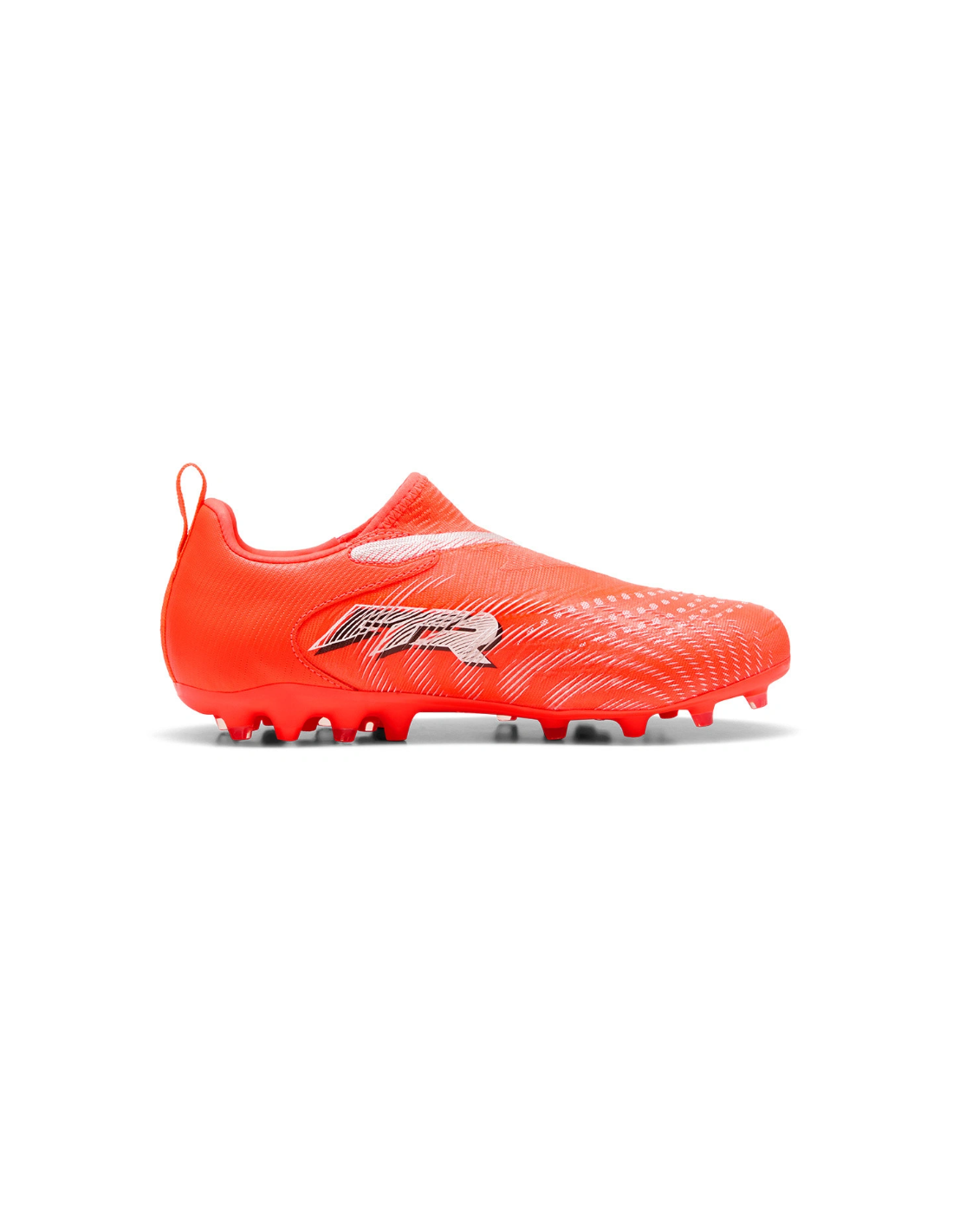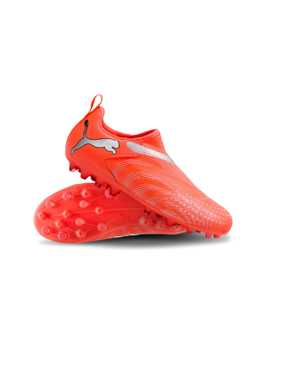 Este modelo junior presenta un diseño moderno y atrevido en la línea Puma Future, con detalles gráficos distintivos y un upper texturizado para mejorar el contacto con el balón. Su estructura de corte medio ofrece estabilidad en el tobillo, mientras que los múltiples tacos MG están distribuidos para brindar tracción reactiva en cada cambio de dirección.