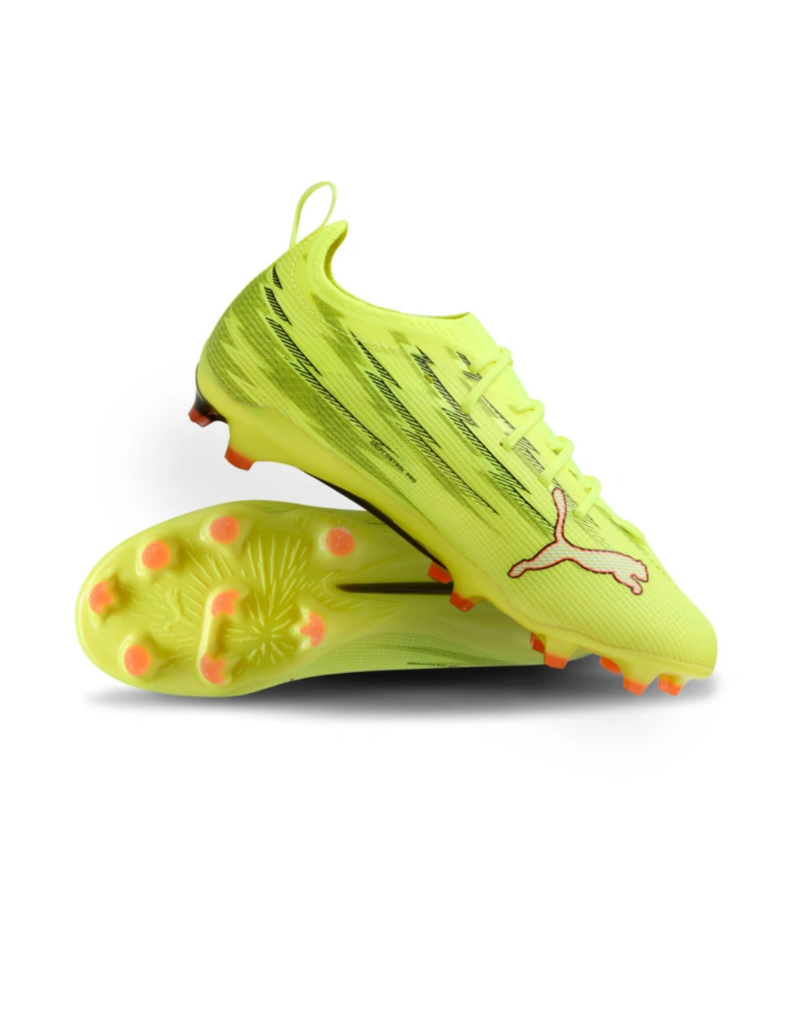 Las Puma Ultra 6 FG/AG Jr son ideales para jóvenes futbolistas que buscan mejorar su velocidad, control y precisión. Están pensadas para rendir en césped natural firme (FG) y césped artificial (AG), ofreciendo una tracción óptima en ambas superficies. Perfectas para entrenamientos, competiciones escolares y clubes formativos.