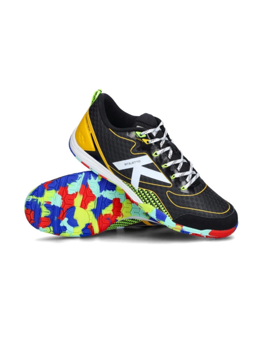 Descubre los KELME INDOOR STILETTO NEGRO/AMARILLO, zapatillas de fútbol sala diseñadas para ofrecer máximo rendimiento y durabilidad. Perfectos para jugadores que buscan control y agilidad en la cancha.