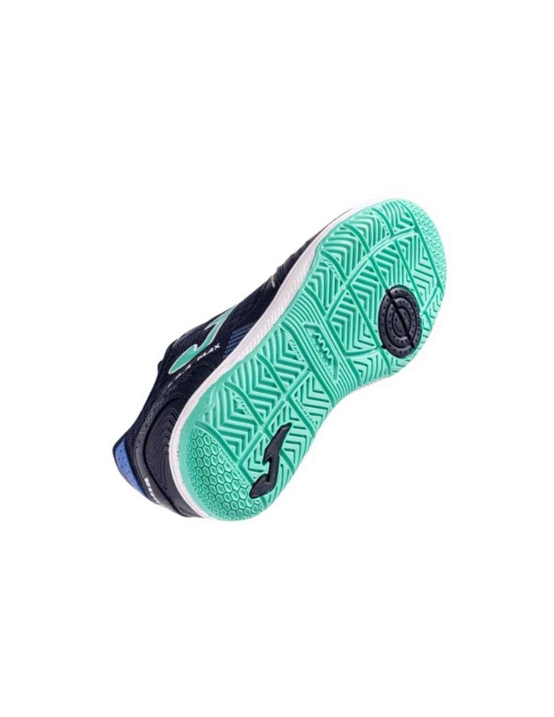 Con un diseño moderno y deportivo, las JOMA SALA MAX JR 2503 presentan una combinación de colores marino y turquesa, ideal para destacar en el juego. La suela baja y flexible favorece la estabilidad y el contacto con el suelo, mientras que su ajuste ergonómico garantiza comodidad durante todo el partido.