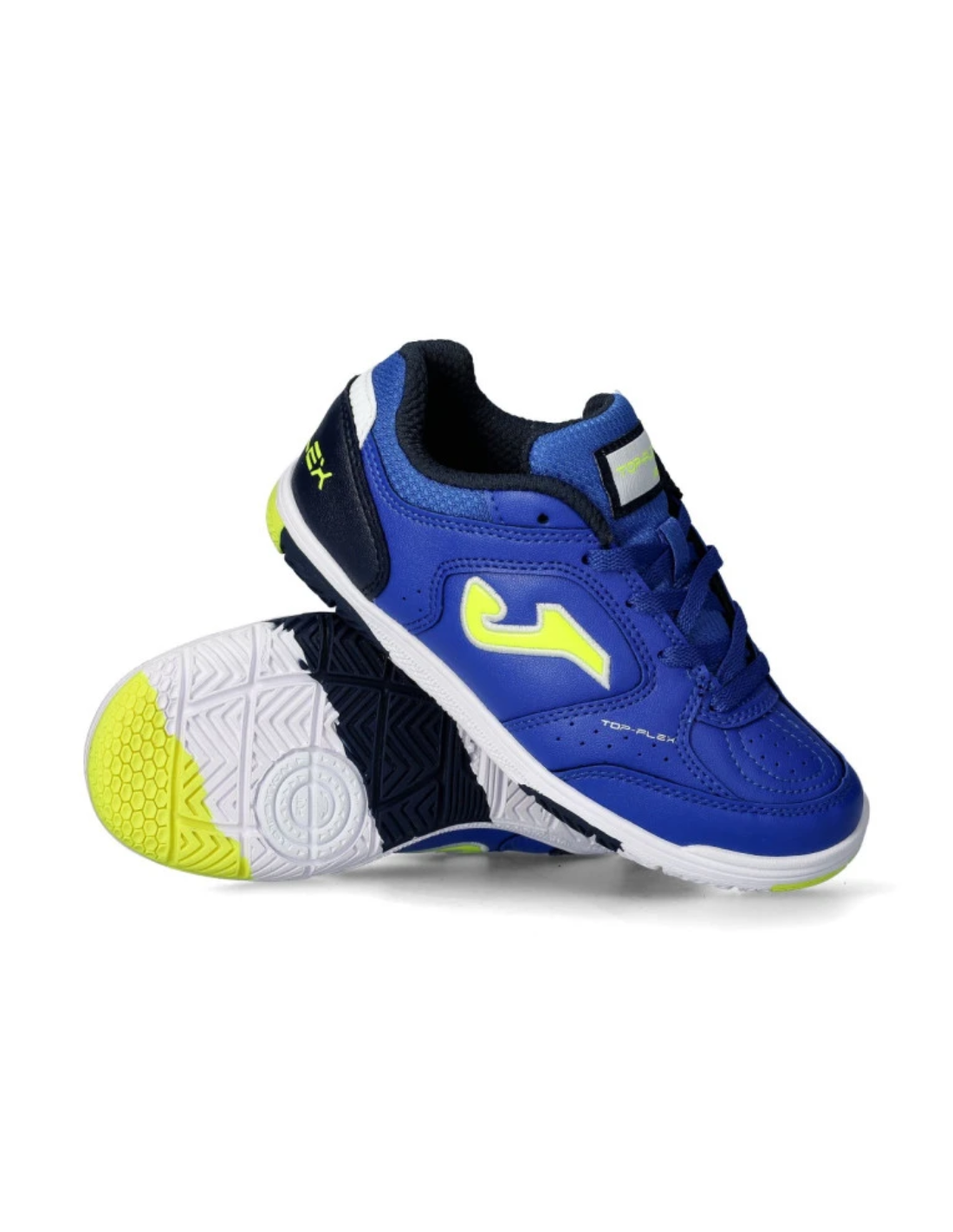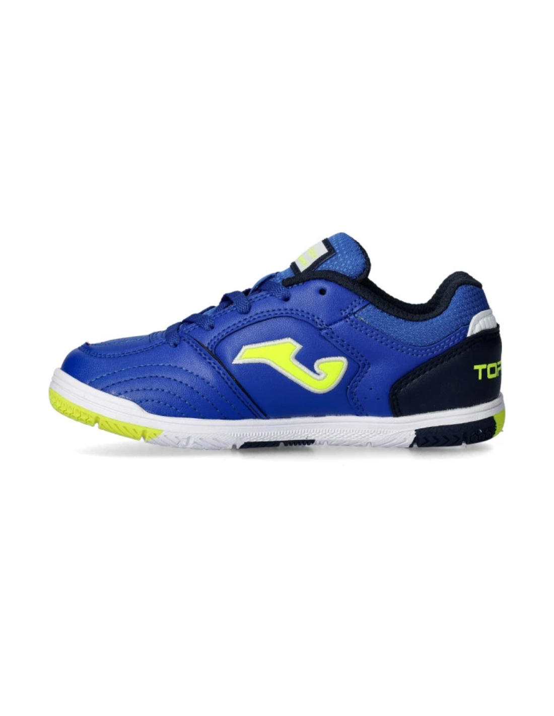 Las zapatillas Joma Top Flex JR 2505 IN Royal son la elección perfecta para niños y niñas que practican fútbol sala. Diseñadas con materiales de alta calidad y un diseño moderno en color azul royal, ofrecen una combinación ideal de flexibilidad, tracción y durabilidad para dominar en la pista indoor.