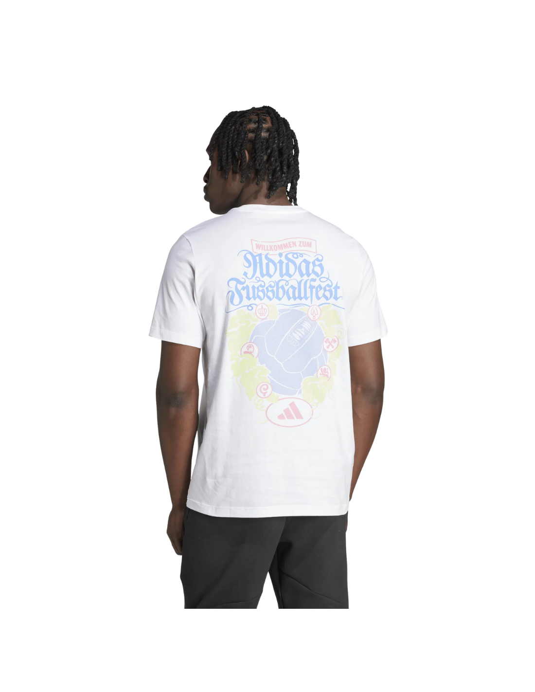 Este modelo presenta un diseño limpio y versátil en color blanco, con un gráfico frontal exclusivo que rinde homenaje al famoso Oktoberfest alemán, conocido como Wiesn. Este detalle gráfico añade un toque único de identidad cultural al diseño deportivo y urbano.