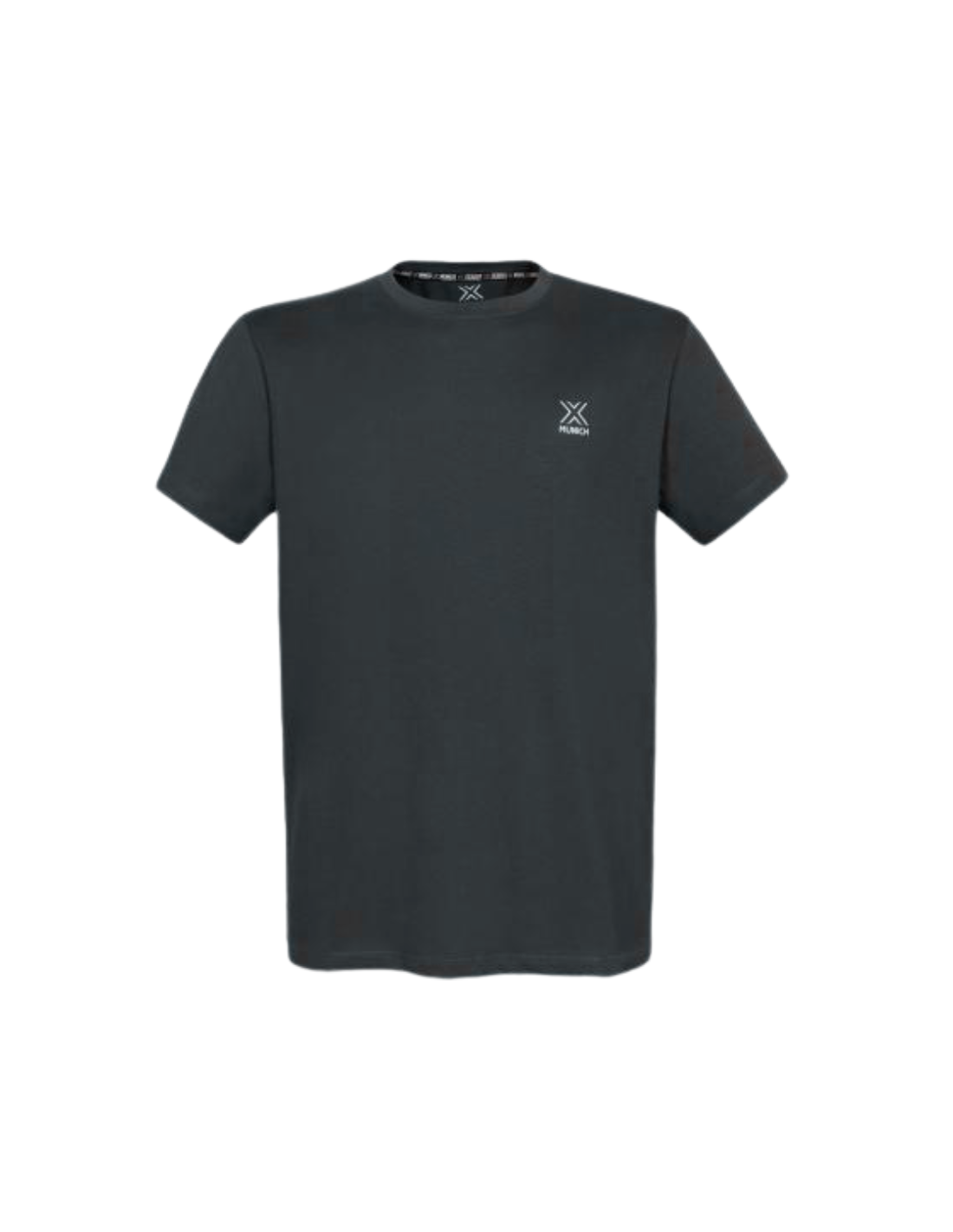 De color negro clásico, presenta el logo MUNICH estampado en el pecho como sello distintivo de la marca. Su corte regular fit favorece la movilidad sin perder la forma, y el cuello redondo reforzado aporta resistencia y durabilidad.