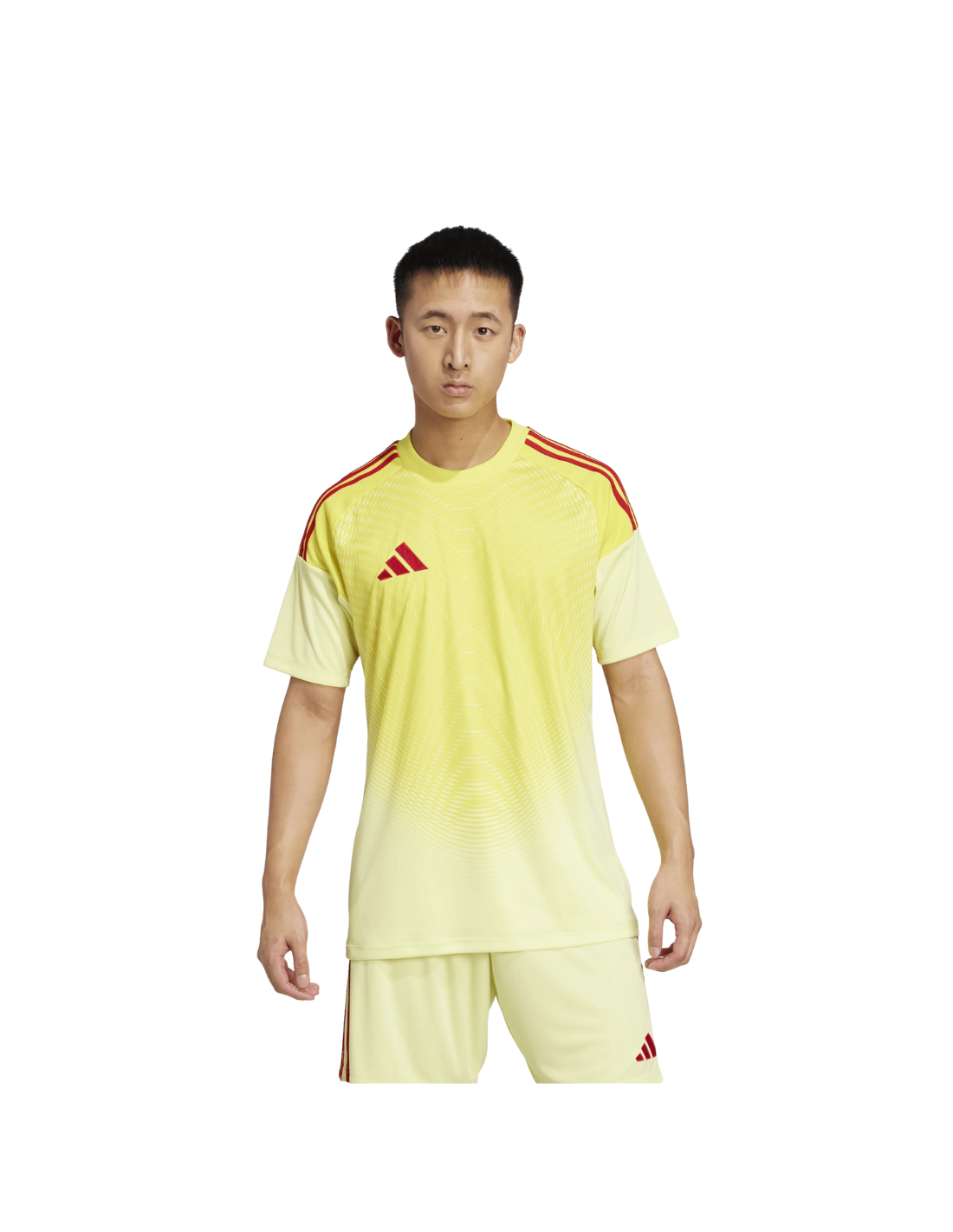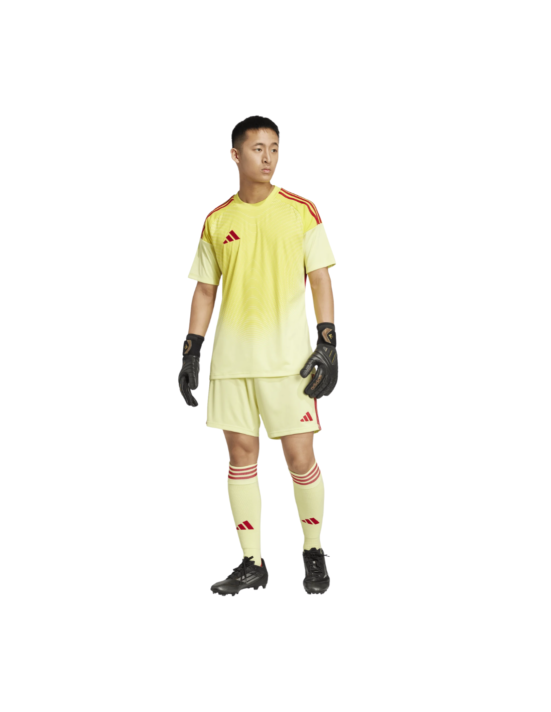 Conjunto corto de portero Adidas T25 en color amarillo (Código: JN2016). Diseño profesional con tecnología de absorción de sudor, tejido ligero y ajuste ergonómico para máxima movilidad en entrenamientos y partidos.
