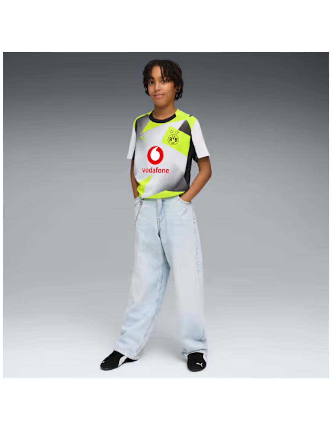 La colaboración entre PUMA y Borussia Dortmund combina tecnología deportiva de alto rendimiento con la tradición del club. Esta equipación junior refleja ese compromiso: calidad, confort y el diseño icónico del BVB para que los más jóvenes jueguen y luzcan como sus ídolos.