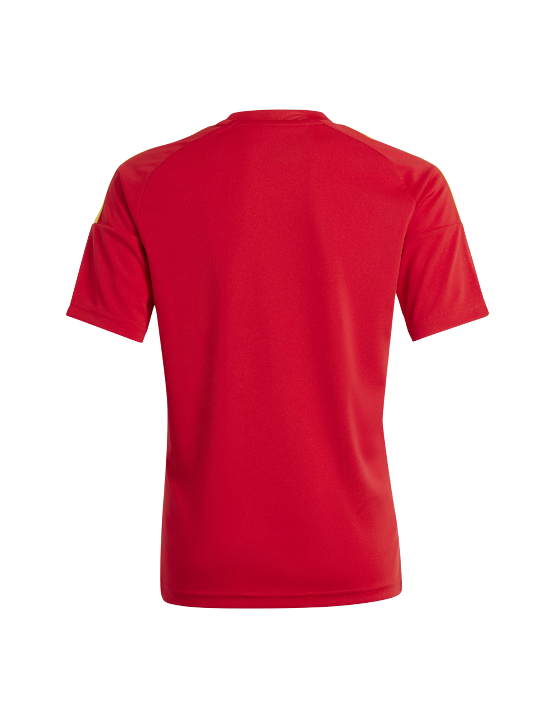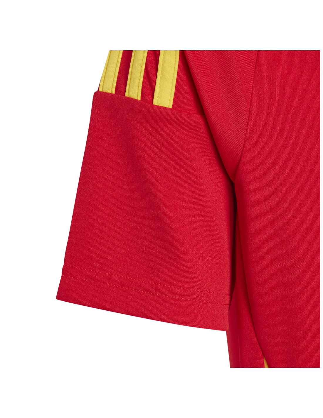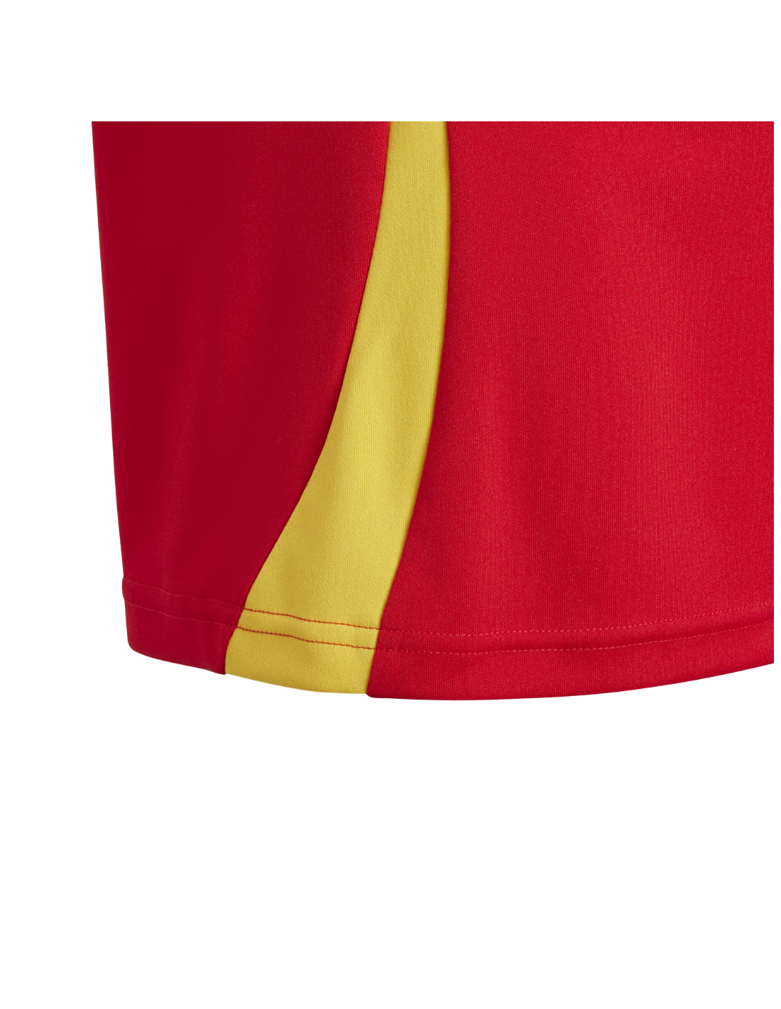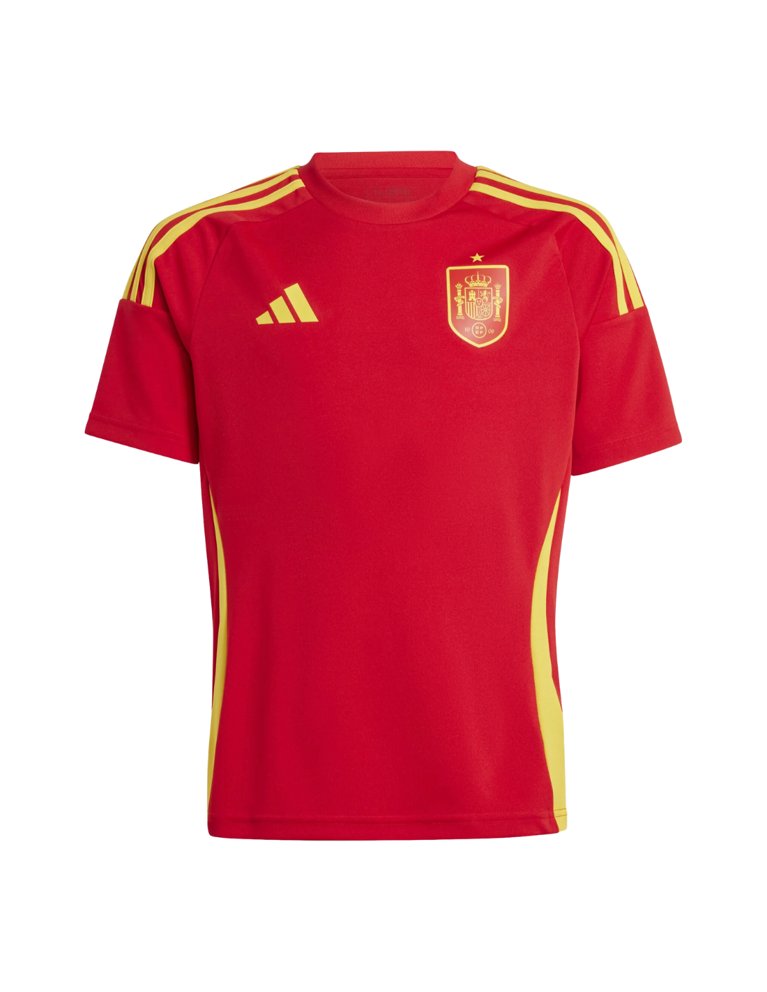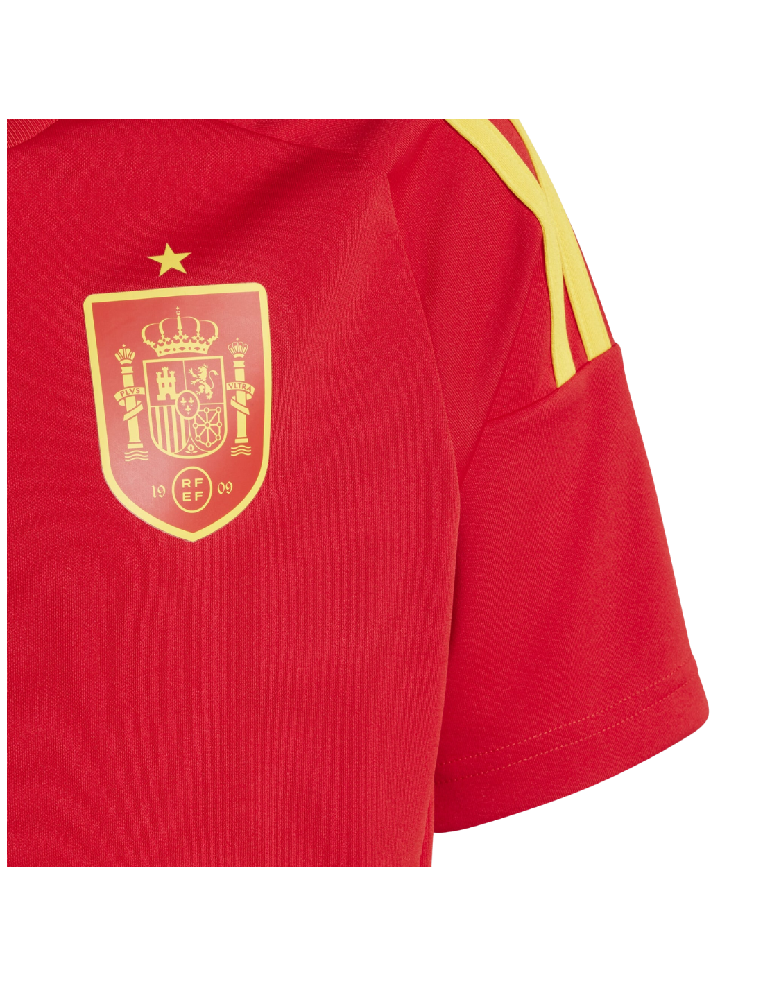 Esta camiseta presenta un diseño elegante y moderno, con los colores icónicos de la selección española. En el pecho, lleva el escudo de la Federación Española de Fútbol y el logotipo de Adidas, destacando tu apoyo al equipo. Los detalles en las mangas y el corte ajustado proporcionan un look deportivo y estilizado.
