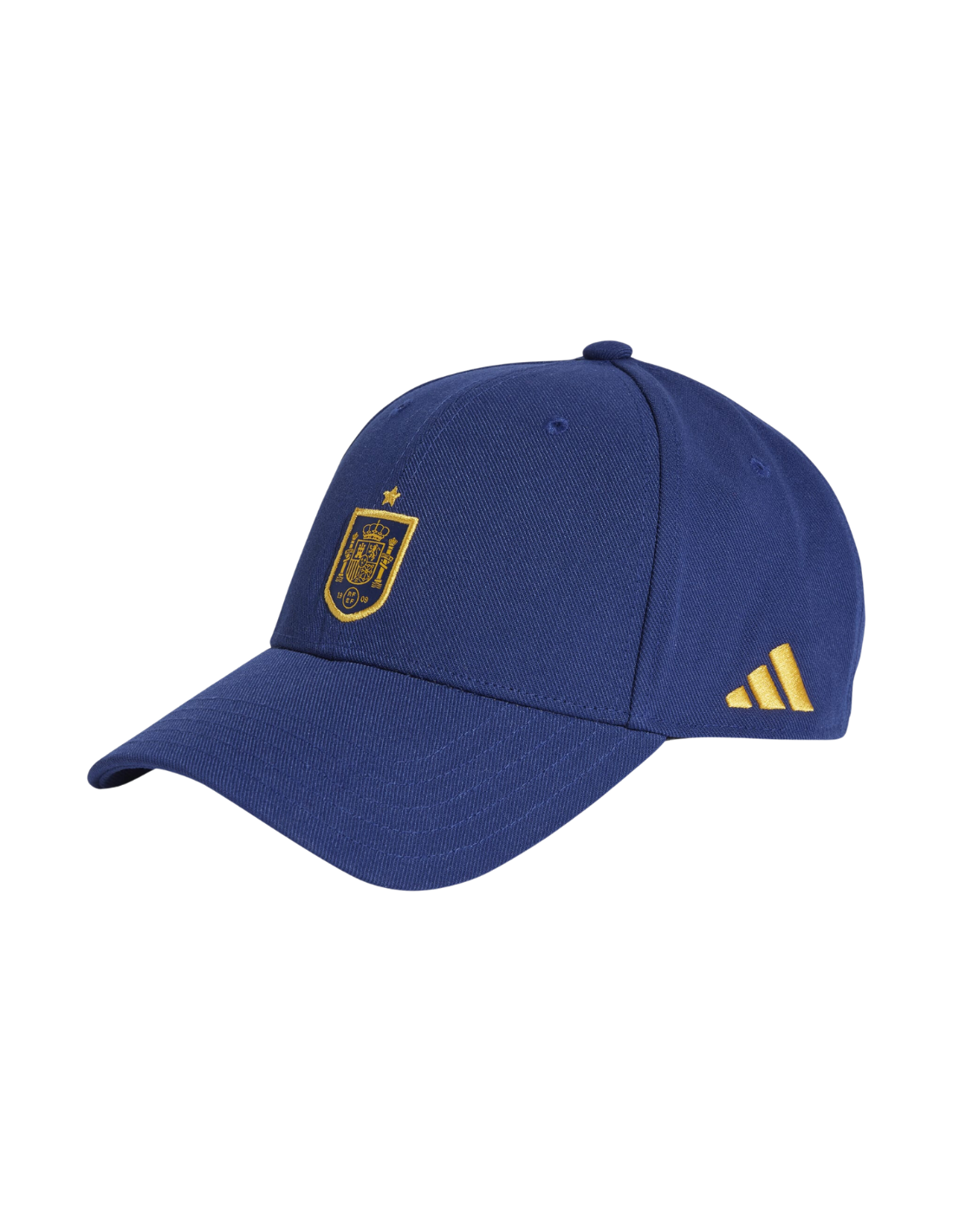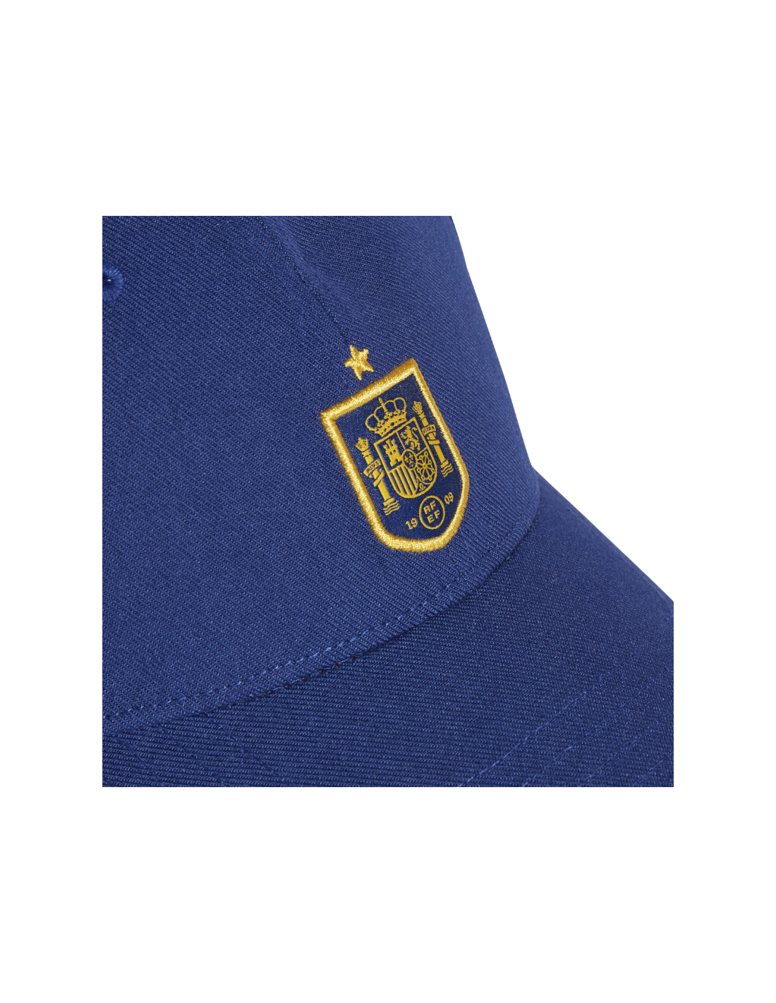 Este modelo destaca por su color azul vibrante y el icónico logotipo de la Real Federación Española de Fútbol bordado en el frente. La gorra cuenta con una visera precurvada que protege del sol, y un cierre ajustable en la parte trasera para un ajuste perfecto a cualquier tamaño de cabeza.