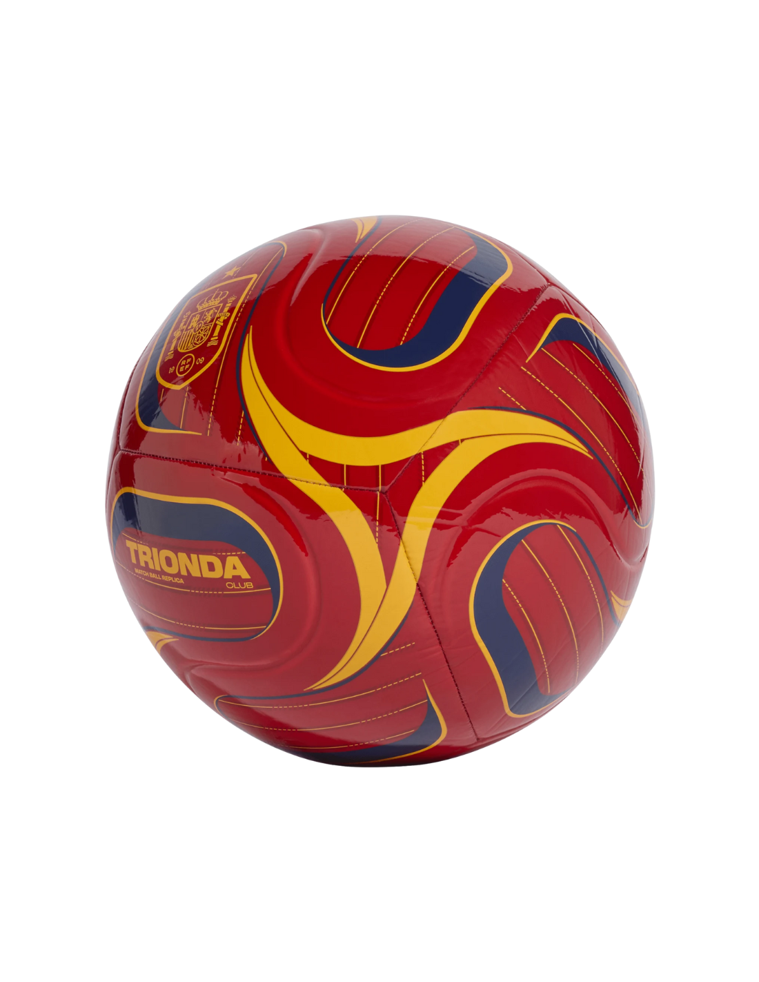 El diseño destaca por su color rojo intenso (“Vivid Red / Team Power Red 2”) combinado con detalles en amarillo y azul, evocando los colores de la Selección Española de Fútbol (La Roja). Tiene la talla estándar (Talla 5) para fútbol 11, lo que lo hace adecuado para adultos y adolescentes. El diseño visual presenta gráficos dinámicos y modernos que realzan la identidad del equipo nacional, convirtiéndolo también en un artículo de coleccionista o para los fans del fútbol español.