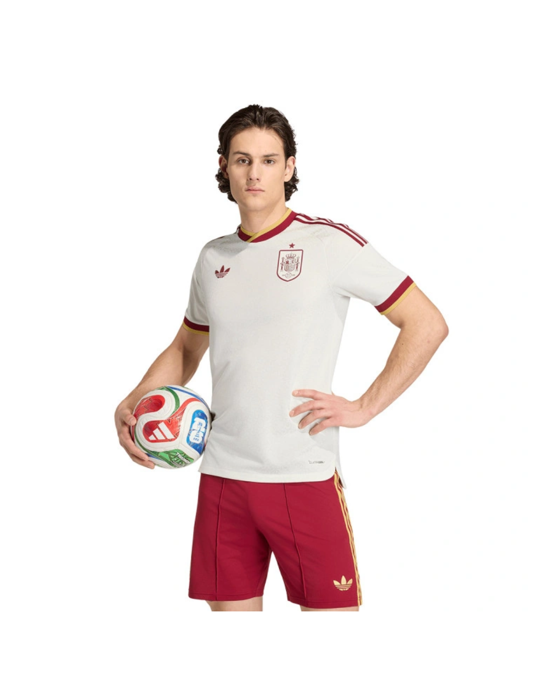Esta camiseta corresponde a la segunda equipación oficial de la selección española y presenta un diseño moderno inspirado en la identidad del fútbol español. Su corte ajustado tipo Authentic es el mismo que utilizan los jugadores profesionales en el terreno de juego, lo que garantiza un ajuste ergonómico y mayor libertad de movimiento. Incluye el escudo de la selección y el logo de Adidas con acabados de alta calidad.