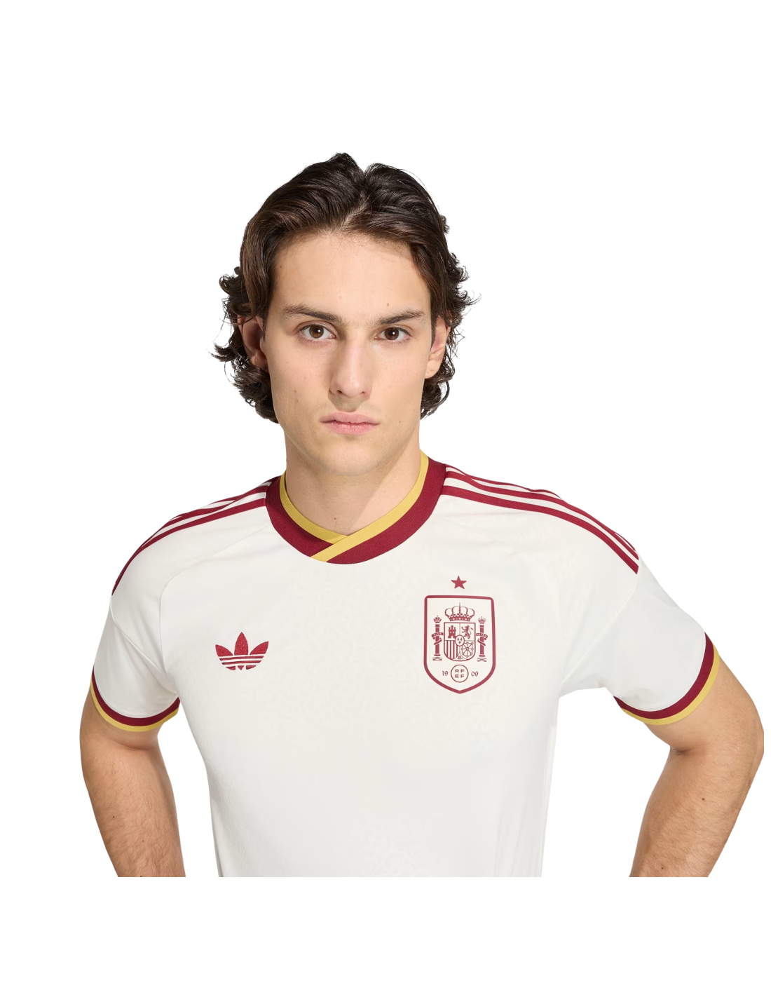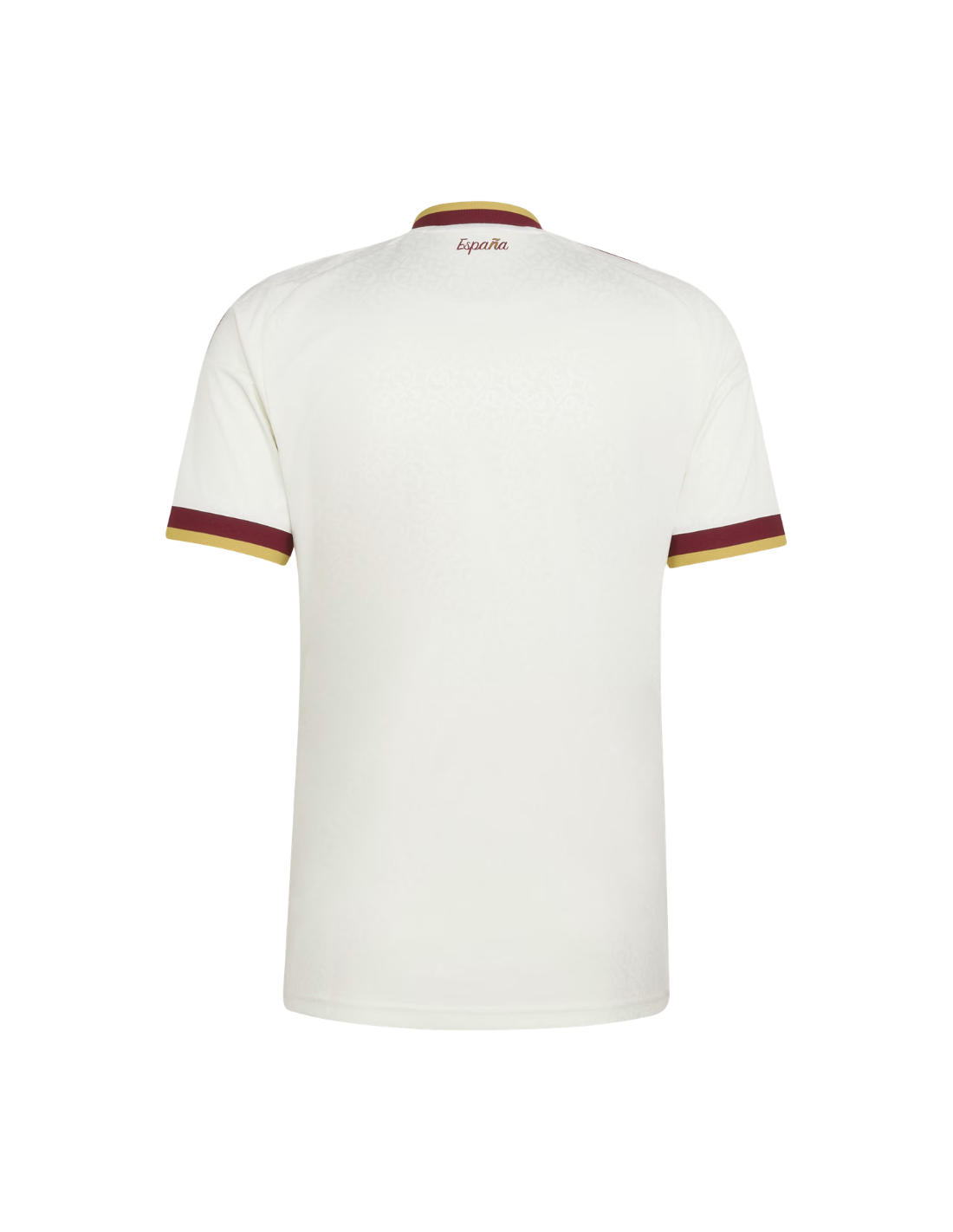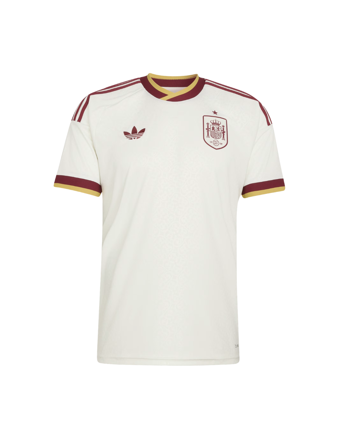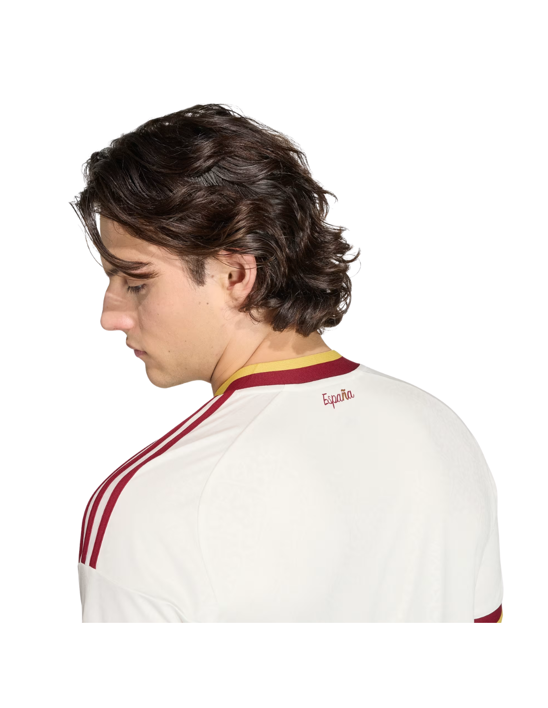 Esta camiseta presenta el diseño oficial de la segunda equipación de la selección española, con un estilo moderno y deportivo. Su corte regular proporciona libertad de movimiento, mientras que el escudo de España y el logo de Adidas aportan autenticidad y carácter futbolístico. Su diseño está pensado para ofrecer un equilibrio perfecto entre rendimiento y estilo.