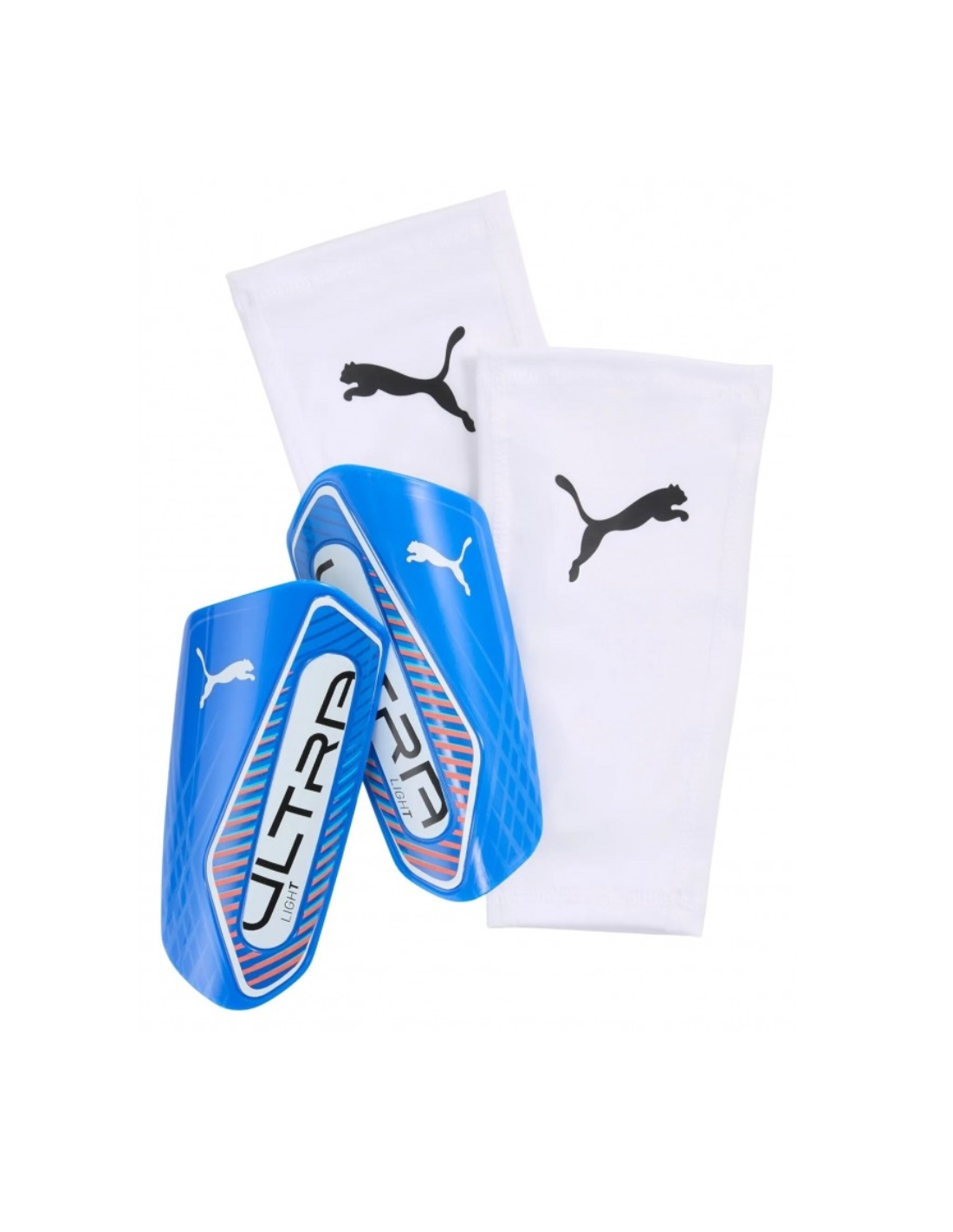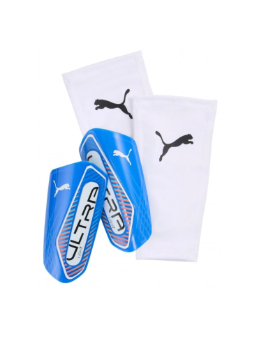Espinilleras PUMA Ultra Light en azul, diseño ergonómico y ligero para máxima protección y comodidad durante el juego. Perfectas para futbolistas que buscan rendimiento y seguridad. Materiales resistentes y tecnología avanzada para un ajuste superior.