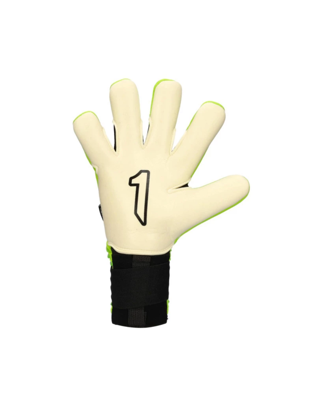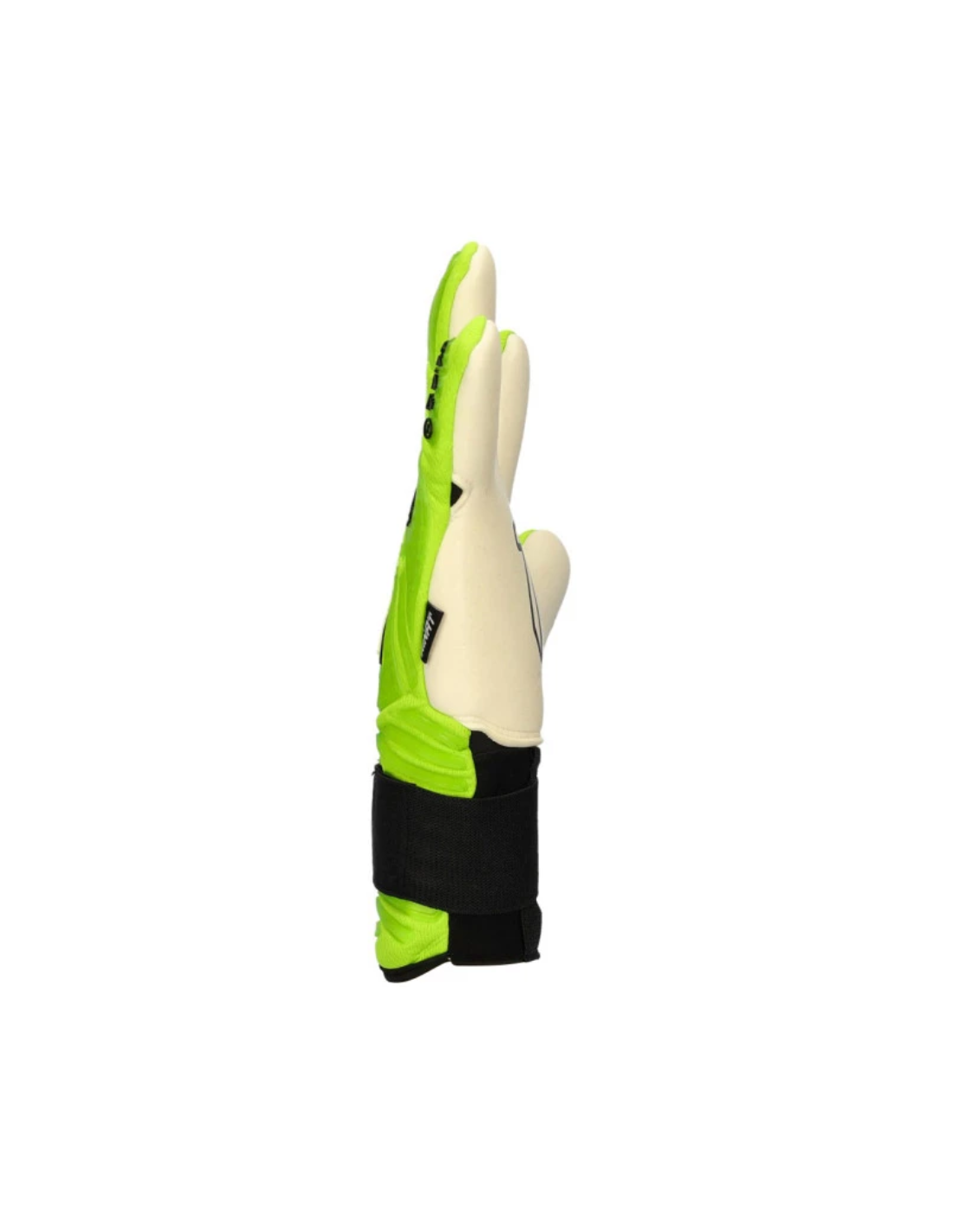 Diseño ergonómico con corte que se adapta a la forma natural de la mano. Cierre envolvente en la muñeca para una sujeción firme y estable. Palma con canaletas y costuras optimizadas para máxima superficie de contacto con el balón, manteniendo flexibilidad en los dedos.