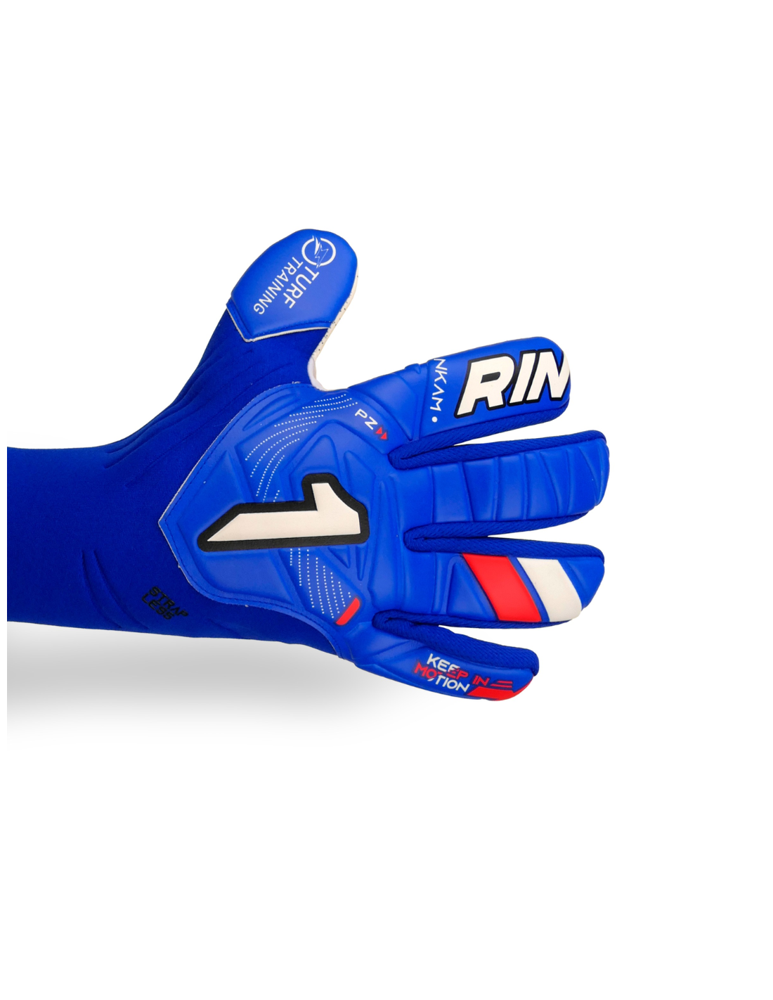 La palma utiliza la tecnología Turf Tech, la formulación más resistente de Rinat para terrenos de entrenamiento, ideal para superficies exigentes. La muñequera está fabricada en material elástico, reforzada con un cintillo de ajuste para ofrecer seguridad en la sujeción de la muñeca.
