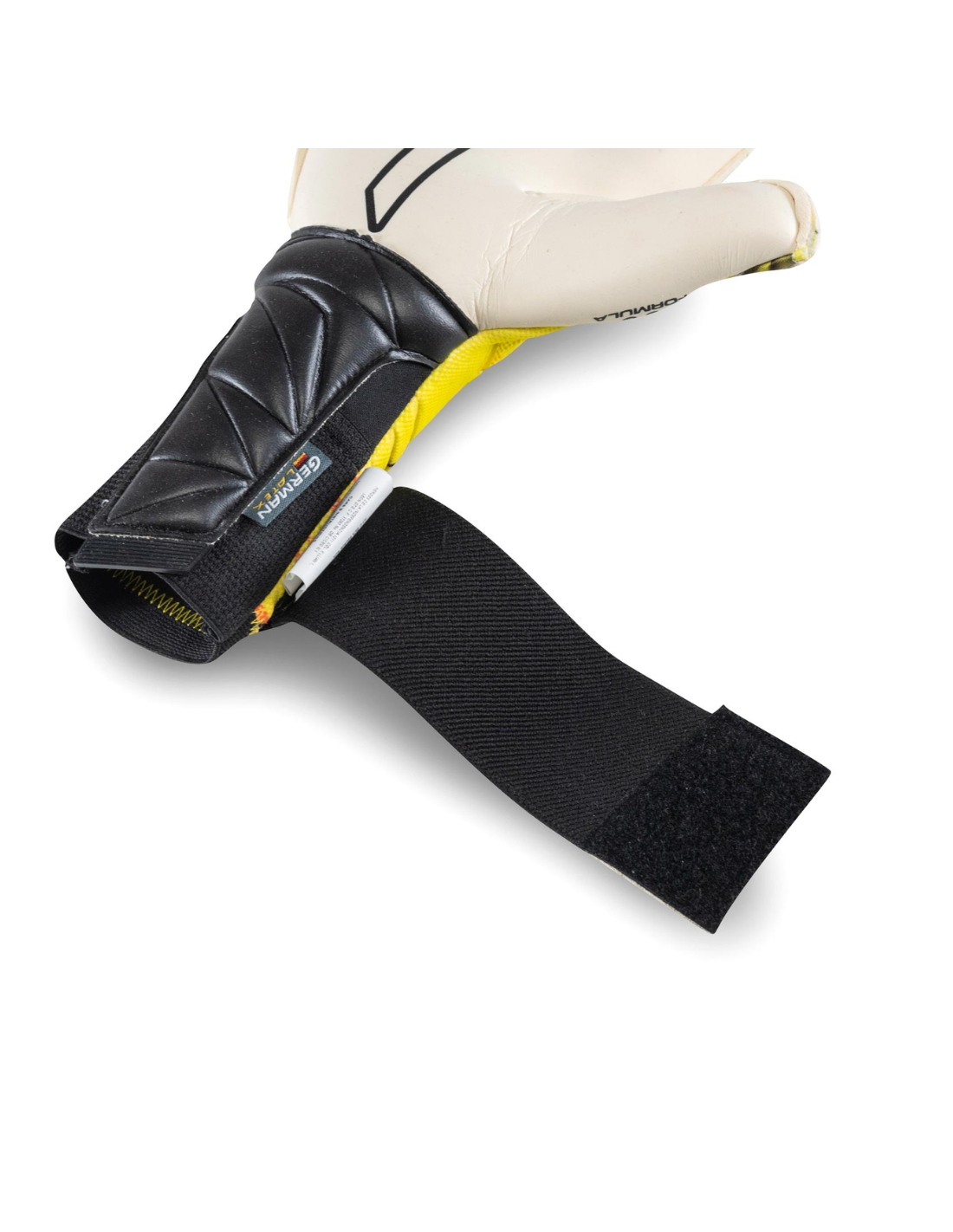 Estéticamente, este modelo presenta una silueta robusta y táctil. El corte Ergo-Roll envuelve las puntas de los dedos con látex, favoreciendo un contacto más directo con el balón y mejor control. El cierre combina una muñequera elástica y un cintillo removible que asegura la fijación de la muñeca y evita pliegues de material sobrante. Diseñado para césped natural, ofrece protección sin perder agilidad.