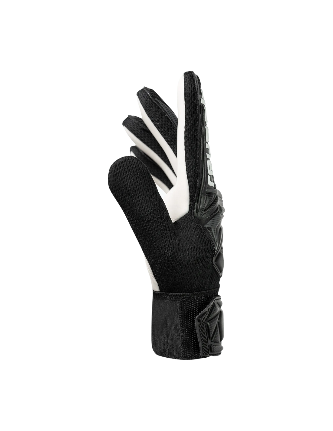 El modelo presenta un corte clásico (Flat Cut), que proporciona una mayor superficie de contacto con el balón. Su diseño en color negro sólido ofrece un estilo moderno y profesional. Incorpora un cierre de muñeca con velcro que garantiza un ajuste seguro y estable.