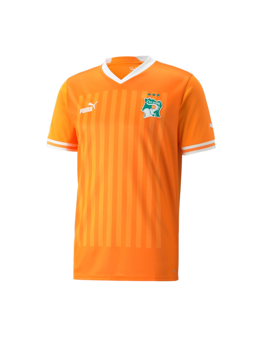 El vibrante color naranja, acompañado de detalles en verde y blanco, rinde homenaje a la bandera de Costa de Marfil. Incluye el escudo oficial de la selección bordado en el pecho, junto al icónico logo de PUMA. Su corte clásico garantiza un ajuste cómodo y ergonómico.