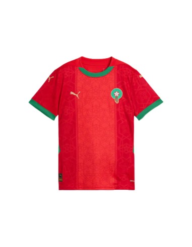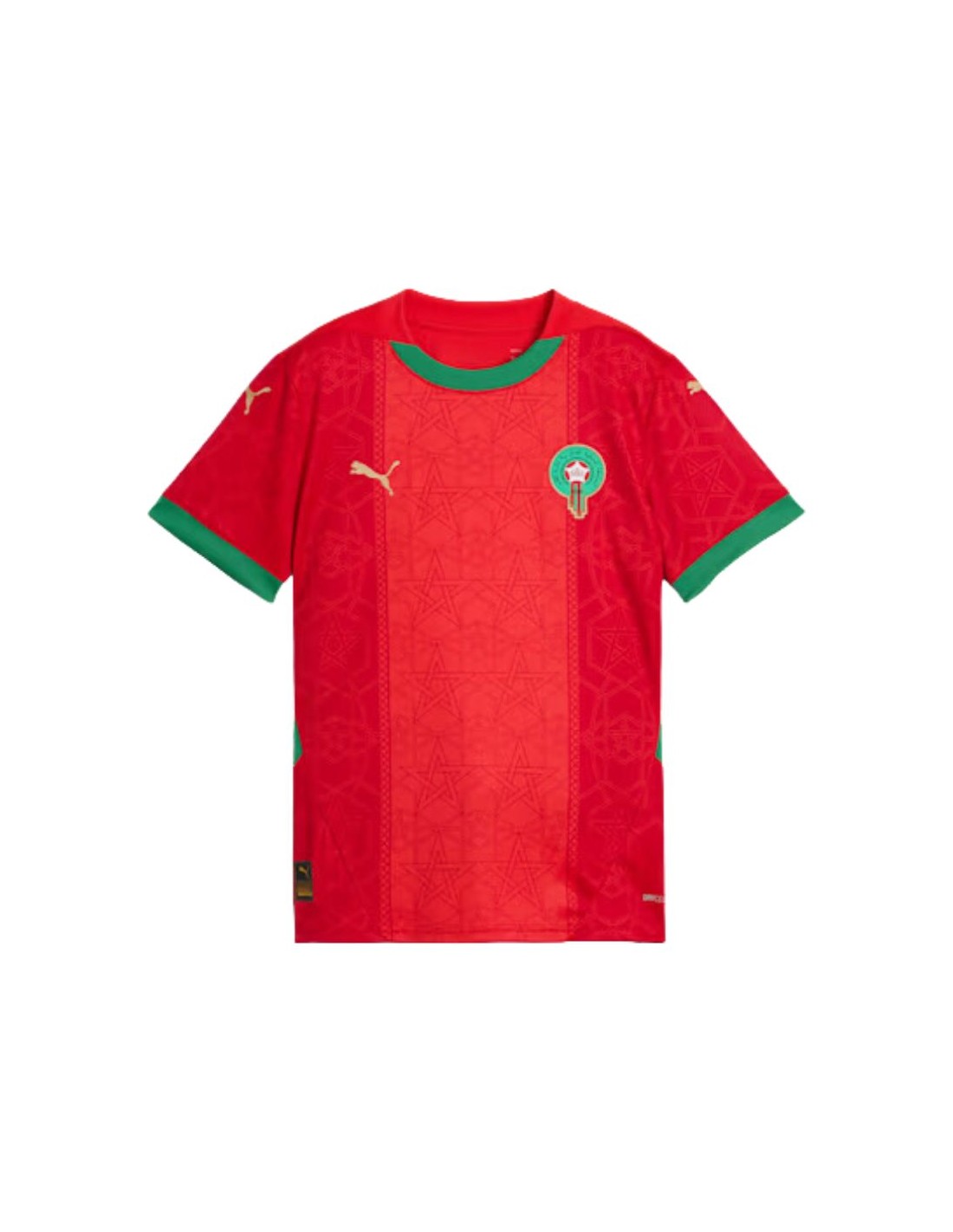 El color rojo vibrante representa la pasión y la energía de Marruecos. Incorpora el escudo oficial en el pecho, el logo de PUMA y detalles en verde que reflejan la identidad del país. Su corte regular fit garantiza un ajuste cómodo y moderno.