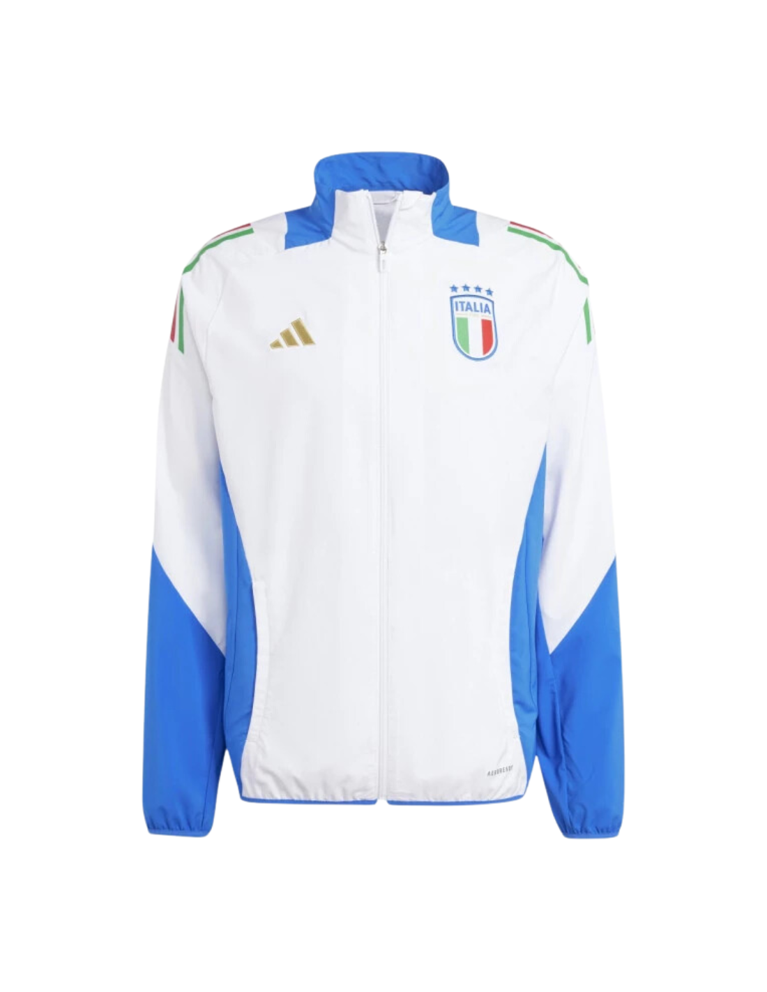 Esta chaqueta presenta un diseño moderno y aerodinámico, con el icónico logo de la Federación Italiana de Fútbol (FIGC) en el pecho y el emblemático logo de ADIDAS en el brazo. Su corte ajustado y sus detalles cuidadosamente elaborados garantizan un aspecto elegante tanto dentro como fuera del campo.