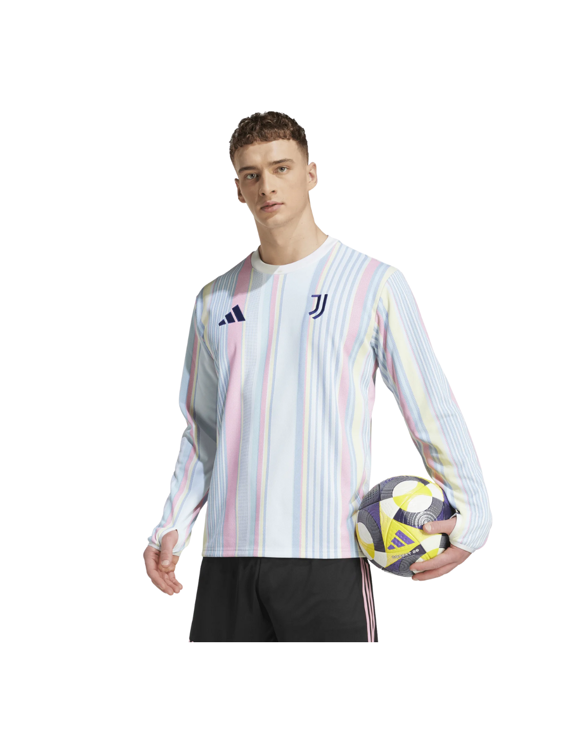Diseño en tonos icónicos del club, con estampados dinámicos que aportan un look enérgico. Mangas largas con puños elásticos, cremallera parcial y ajuste regular para adaptarse a cualquier fisionomía. El escudo de la Juventus y el logo de Adidas destacan en el pecho.