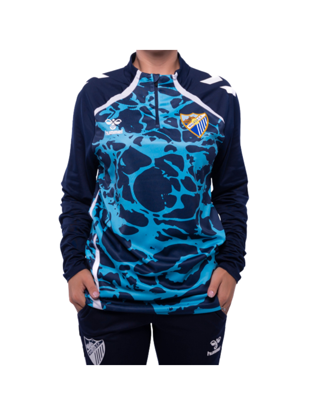 Presenta un corte deportivo ajustado, ideal para el calentamiento y uso diario. El diseño destaca por los colores oficiales del Málaga CF y el logotipo de Hummel en el pecho, junto con el escudo del club. Incluye cremallera completa, cuello alto y bolsillos laterales con cierre.