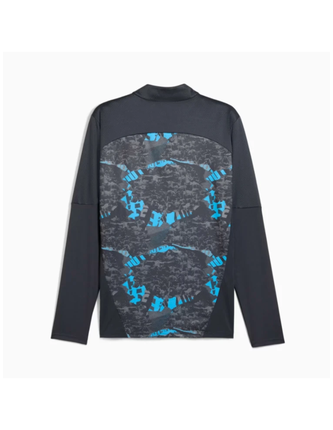 La sudadera pre-match presenta un diseño negro elegante, con detalles de la marca PUMA en el pecho y el logotipo del Manchester City en el lado izquierdo. Su ajuste regular y el cuello redondo hacen que sea una prenda fácil de llevar durante cualquier actividad. Las mangas largas y los puños elásticos aseguran un ajuste perfecto, manteniendo la sudadera en su lugar durante el movimiento.