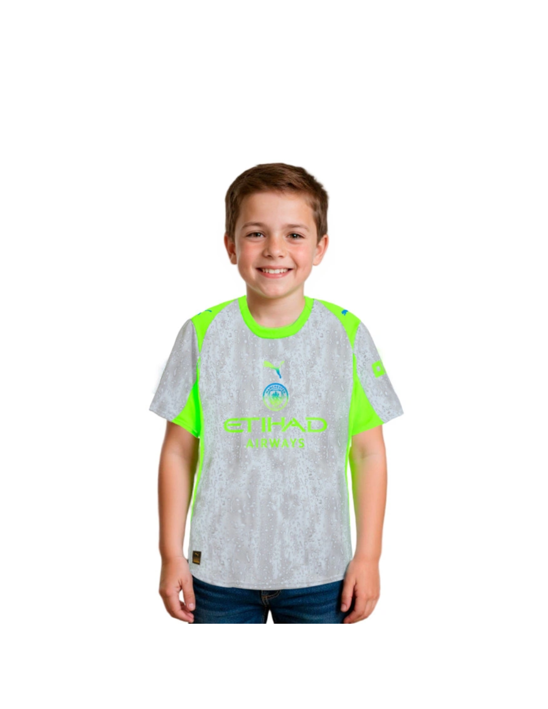 Ideal para jóvenes futbolistas apasionados por el Manchester City, esta camiseta es perfecta para entrenamientos, partidos o como prenda de apoyo al equipo. Su diseño y materiales la hacen adecuada tanto para actividades deportivas como para uso diario.
