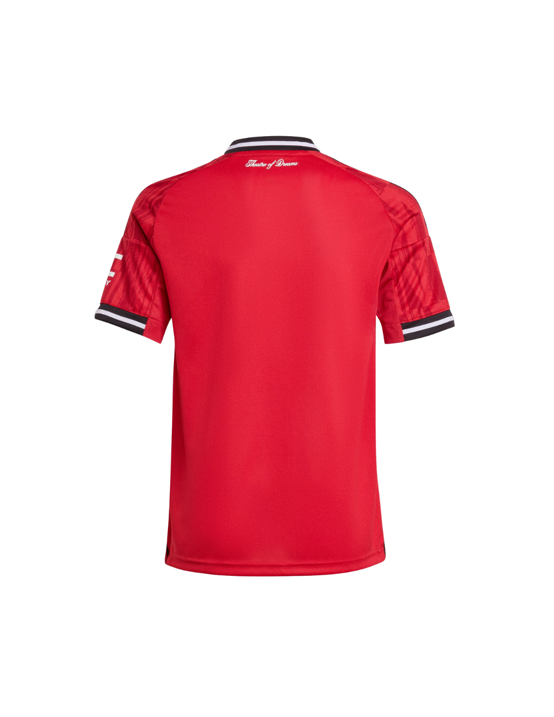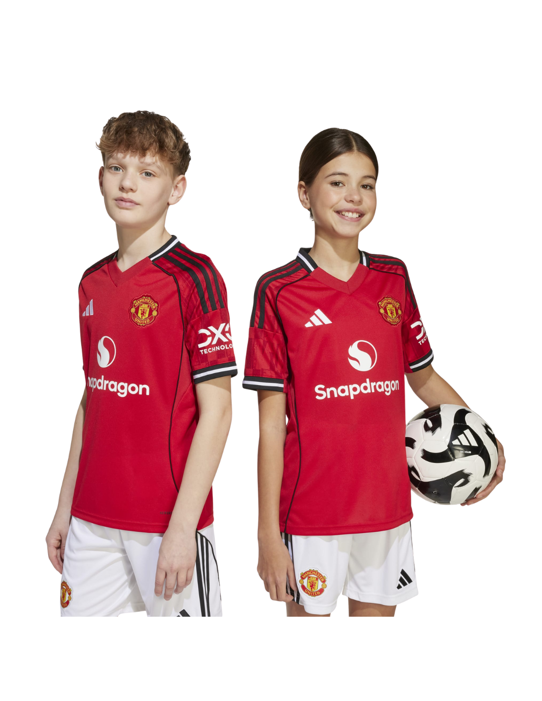 Con su clásico color rojo intenso y detalles en negro y blanco, esta equipación reproduce fielmente el diseño usado por el primer equipo. Incorpora el escudo bordado del Manchester United, el logotipo Adidas y los icónicos detalles de las tres franjas en los hombros. El corte regular proporciona libertad de movimiento, ideal para niños activos.