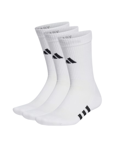 Los calcetines ADIDAS PRF CUSH CREW3P Blancos están confeccionados con una mezcla de materiales premium que combinan poliéster, algodón y elastano. Esta composición asegura una mayor durabilidad y transpirabilidad, manteniendo tus pies frescos y secos durante todo el partido.