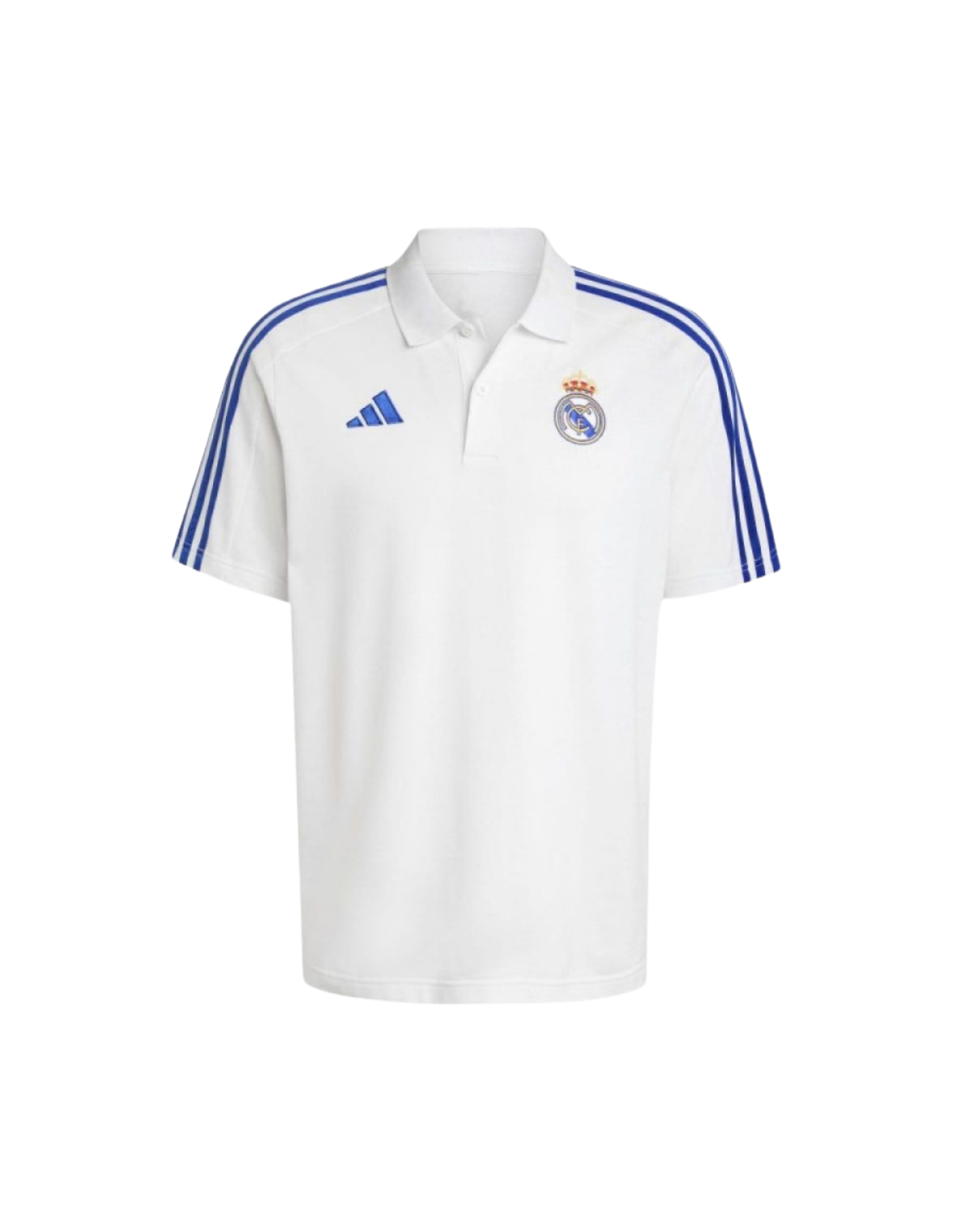 Polo oficial Adidas Real Madrid 25/26 en blanco y azul – ideal para fans del club merengue. Diseño elegante, materiales de alta calidad y comodidad total. ¡Luce el ADN del Real!
