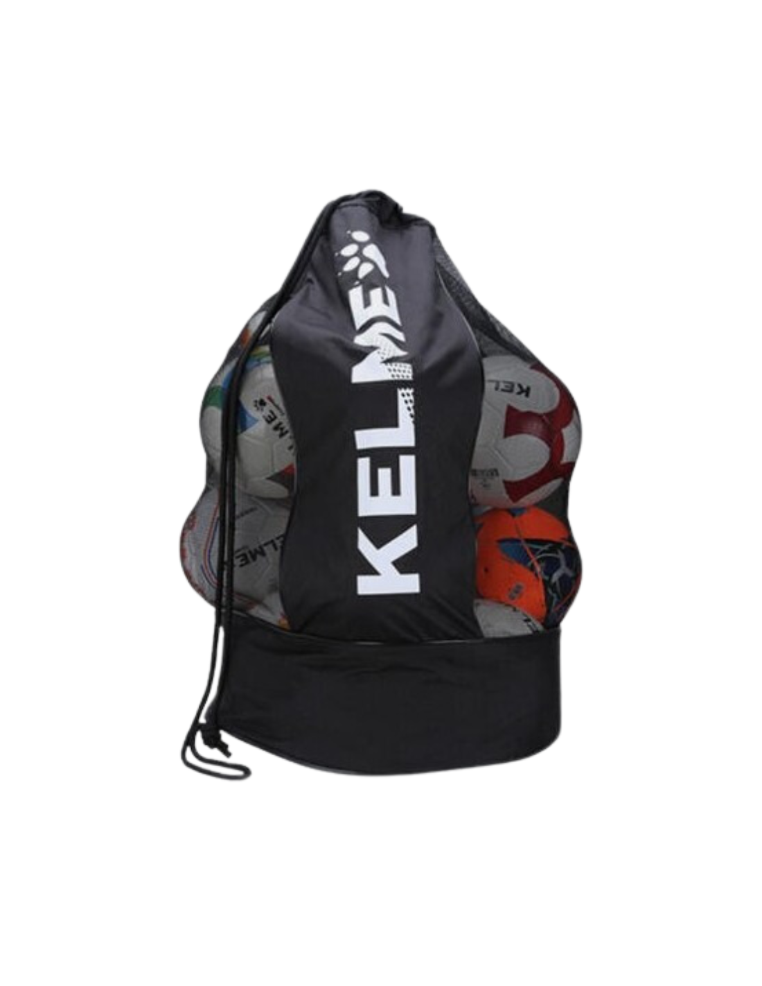 Bolsa para balones marca Kelme. Bolsa porta-balones para recoger y almacenar balones de forma cómoda y ordenada. Bolsa para balones de poliéster con cierre de cuerda. Lleva correa tipo mochila para llevarlo en la espalda. Capacidad aproximada 10/12 balones fútbol. Medidas: 50x50x90cm. BOLSA DE BALONES KELME – 9886019 POP UP BAG. Color negro.